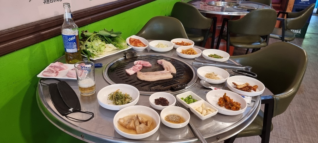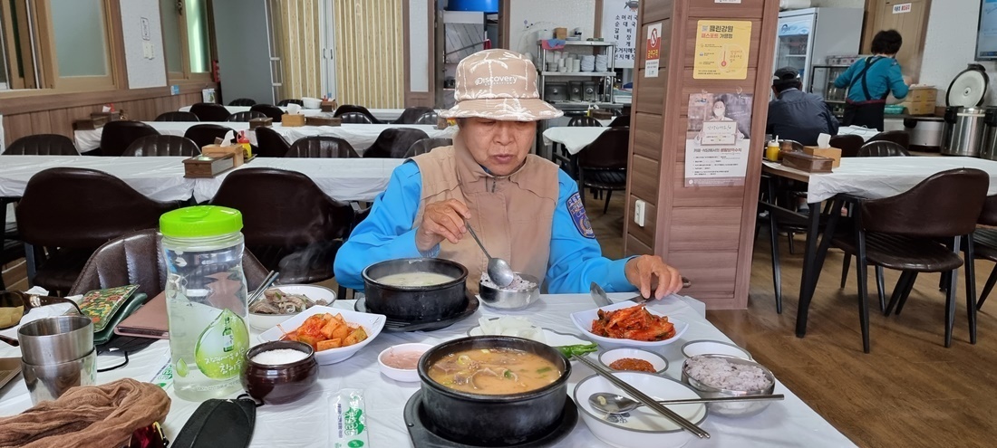 소고기 국밥을 시켜놓고 이야기를 나눕니다. 감사하게 잘 먹었고요 그 덕분에 무사히 통도사까지 걸음 할 수 있었습니다.