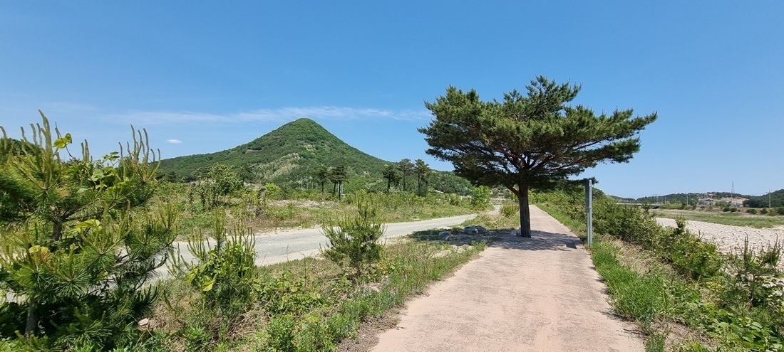 앞에 삿갓을 닮은 작은 산은 운봉산이며 그 옆은 죽변산이다.