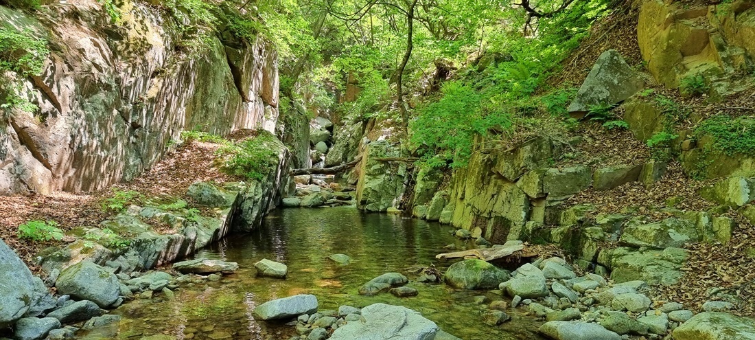 백두대간 마산봉이나 신선봉에서 흘러온 문암천은 비가 오지 않아 바닥이 훤히 보일 정도로 메말라있다.