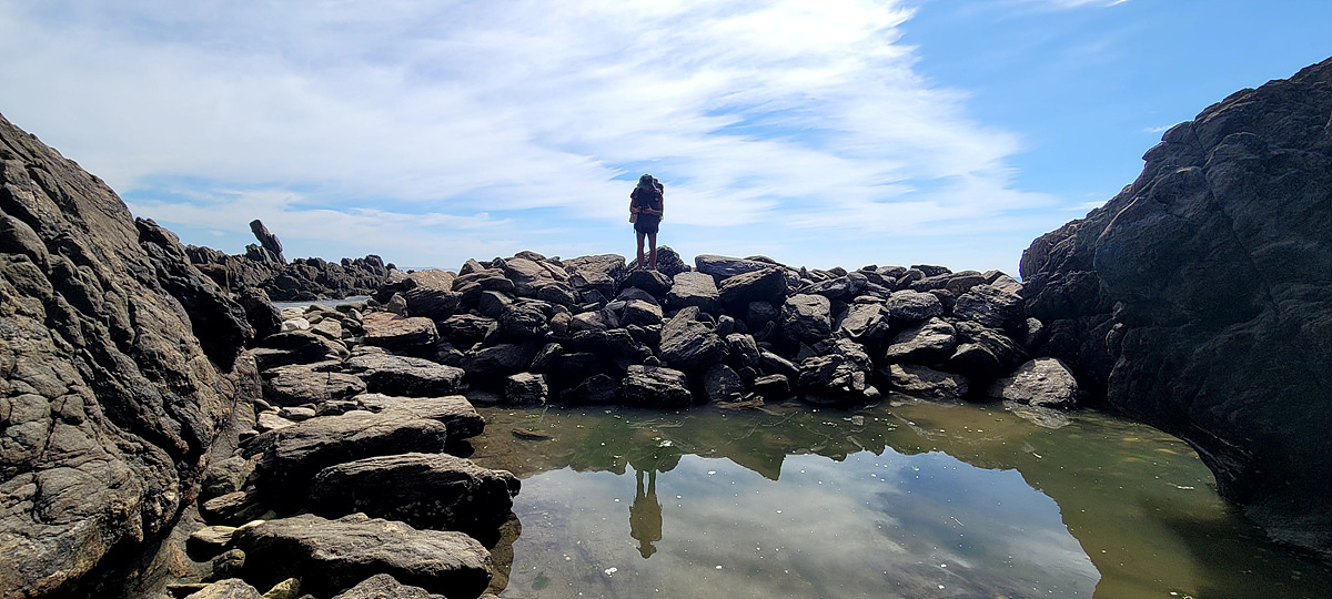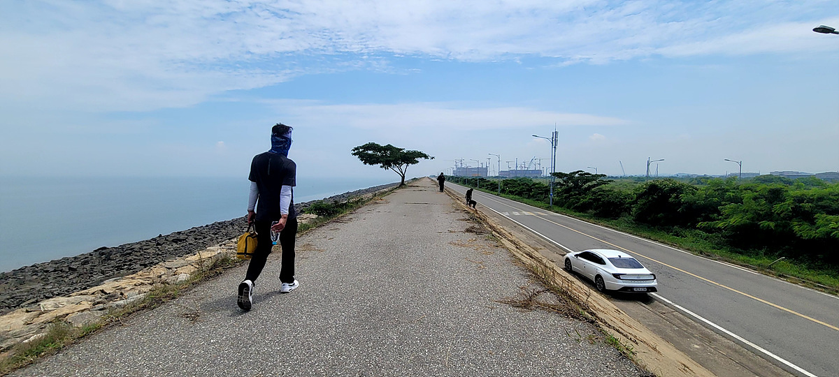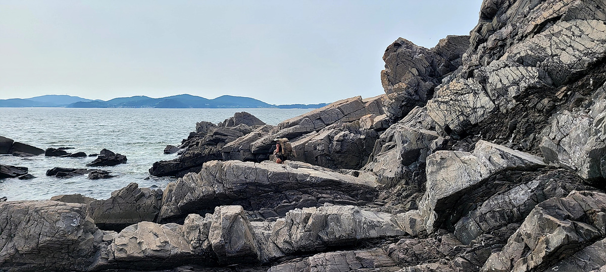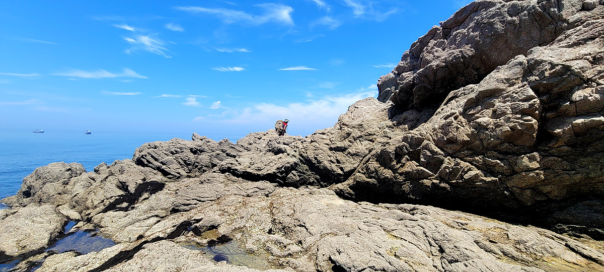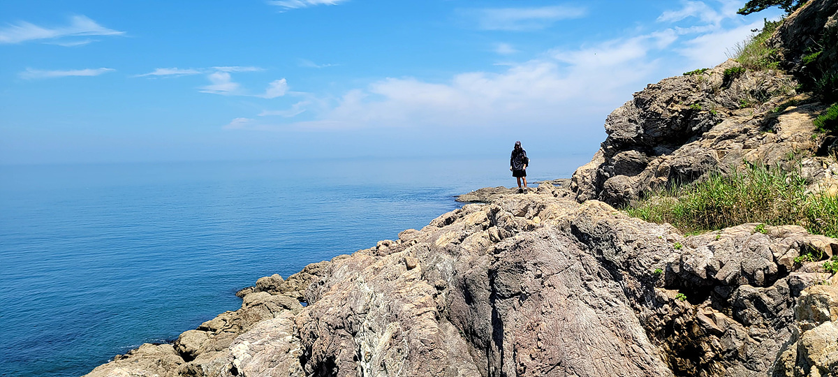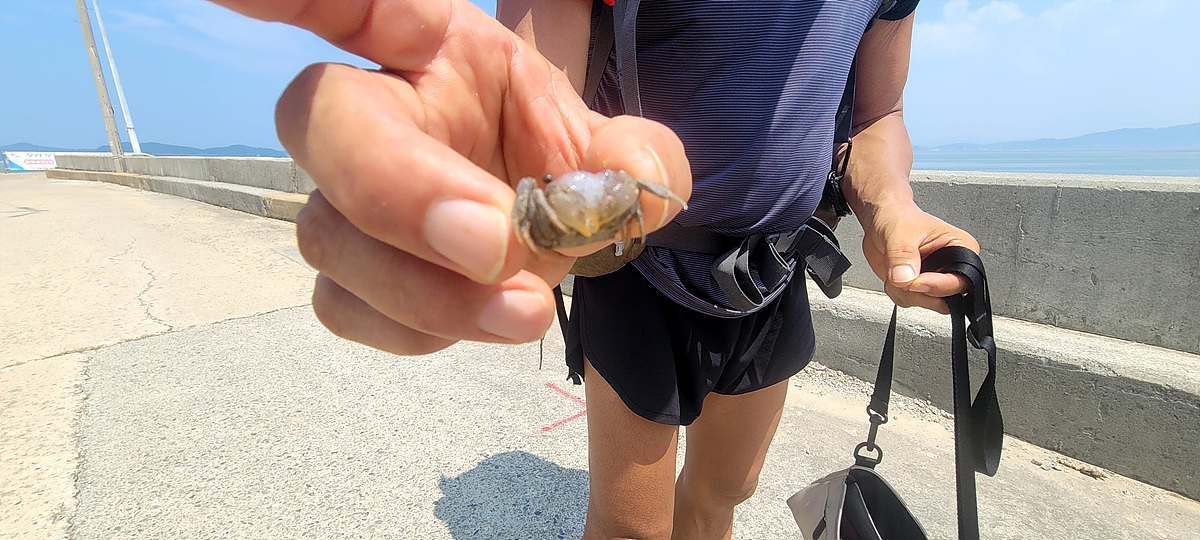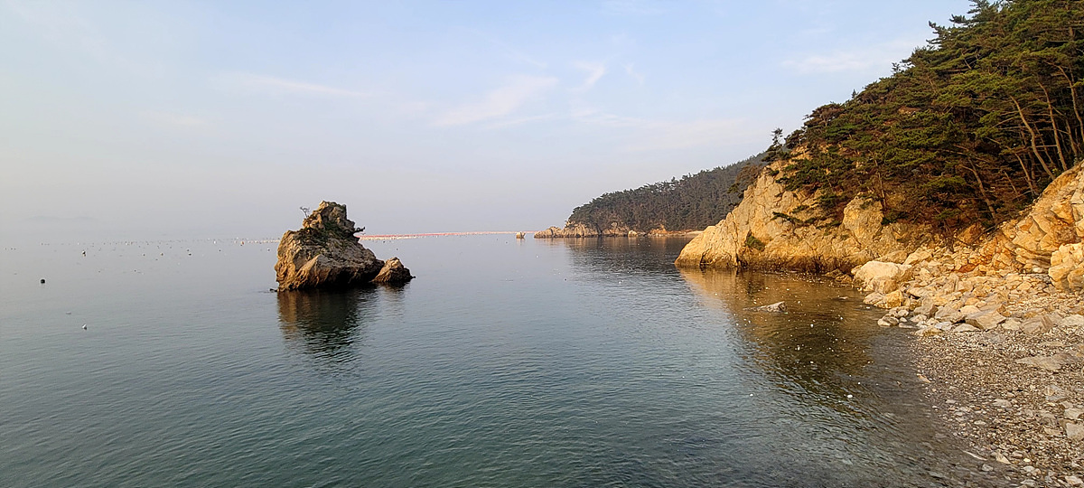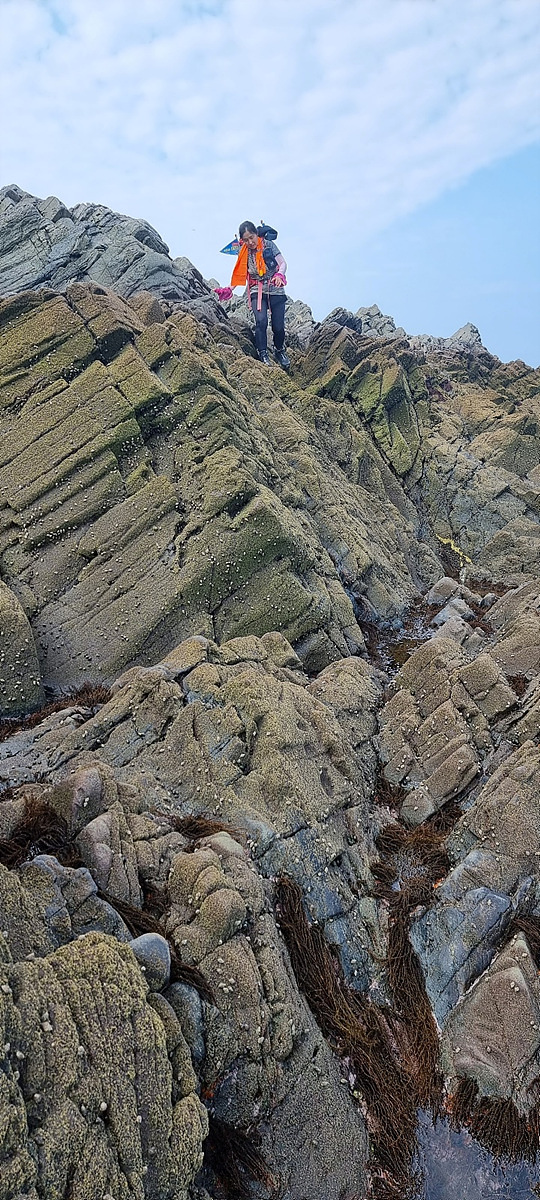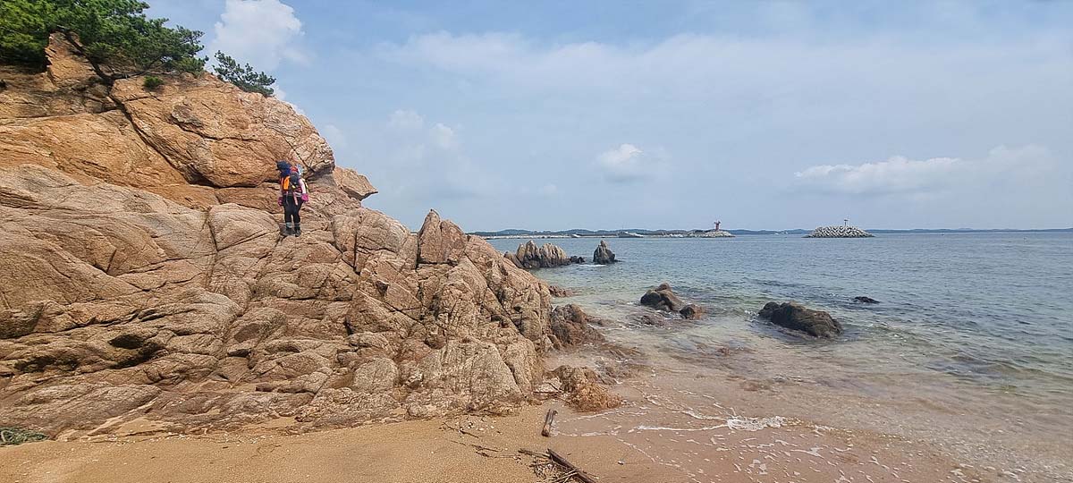 우리가 걷고 있는 해안길은 도로, 갯벌, 바닷물, 모래, 자갈, 돌멩이, 바위 암릉 등으로 이루어져 있어