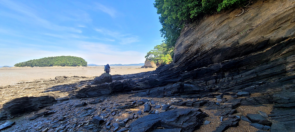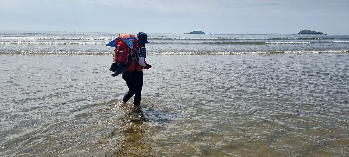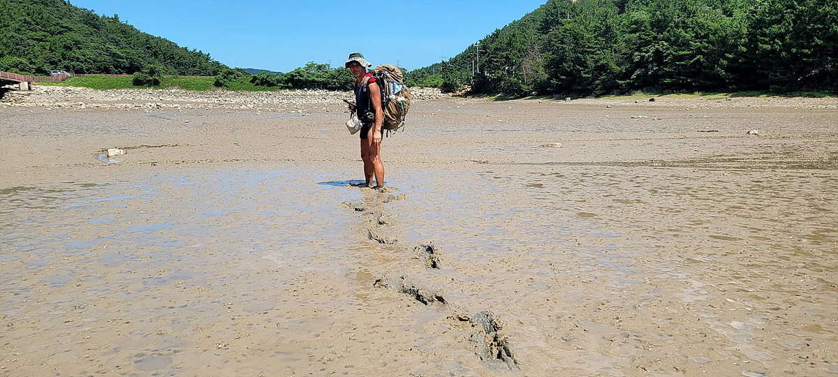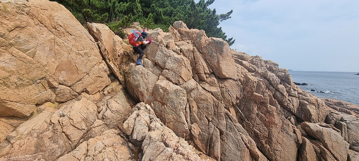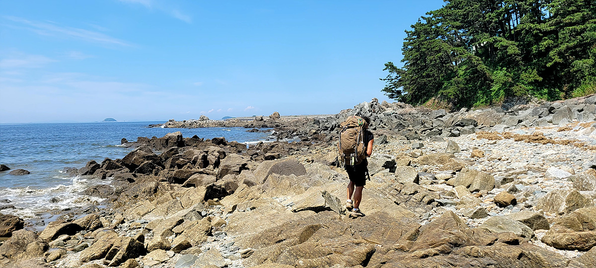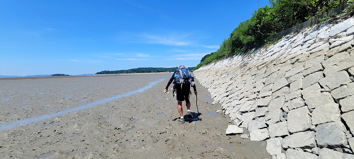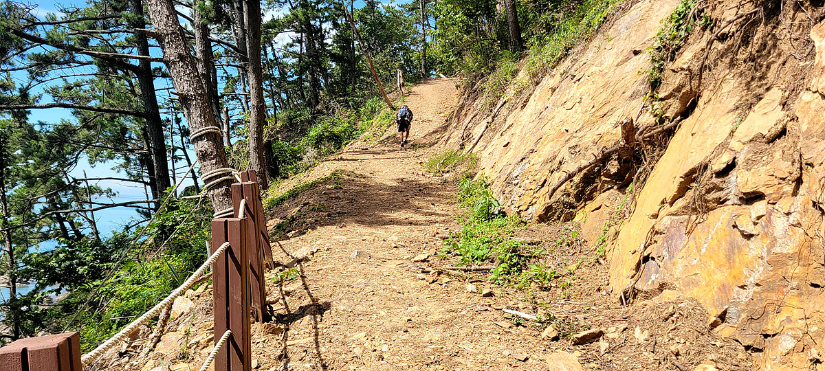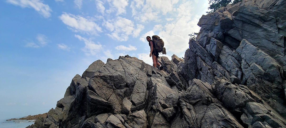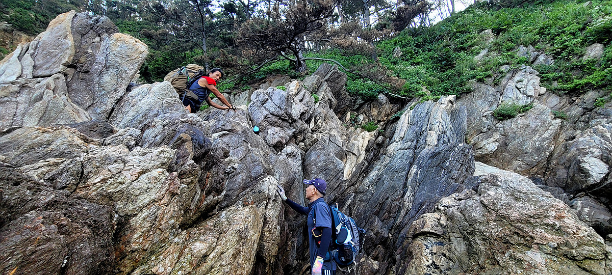 허벅지 허리 높이의 바닷물, 모래, 푹푹~ 갯벌, 자갈, 뾰족뾰족 바위, 암릉, 비탈, 산길 등...
