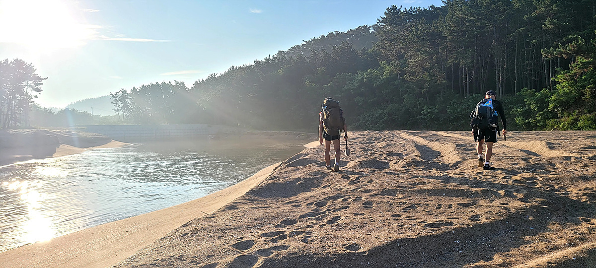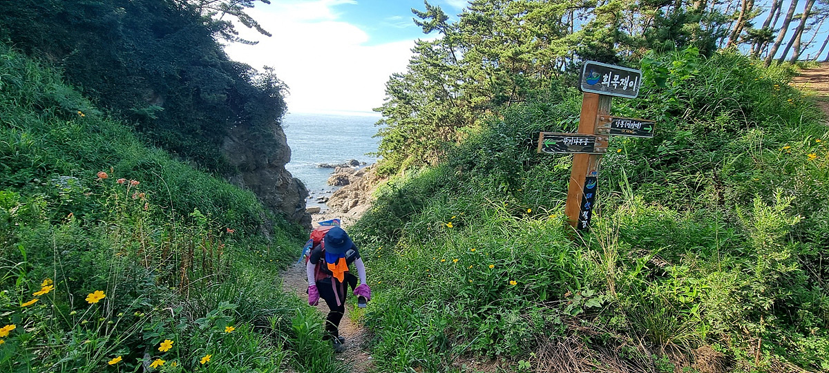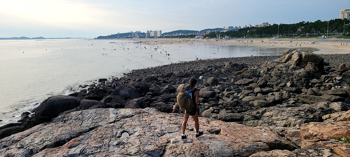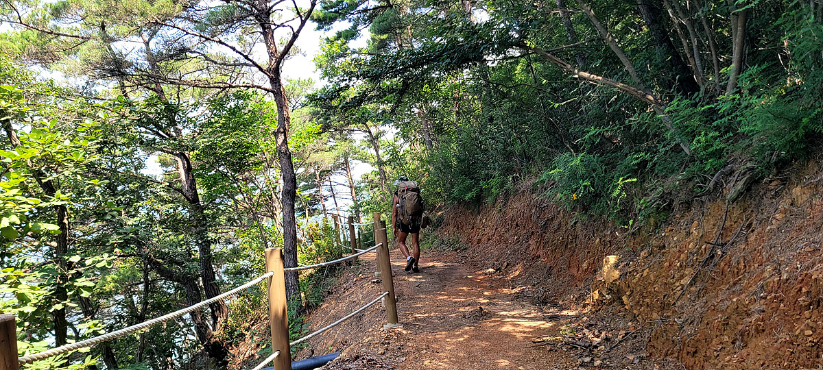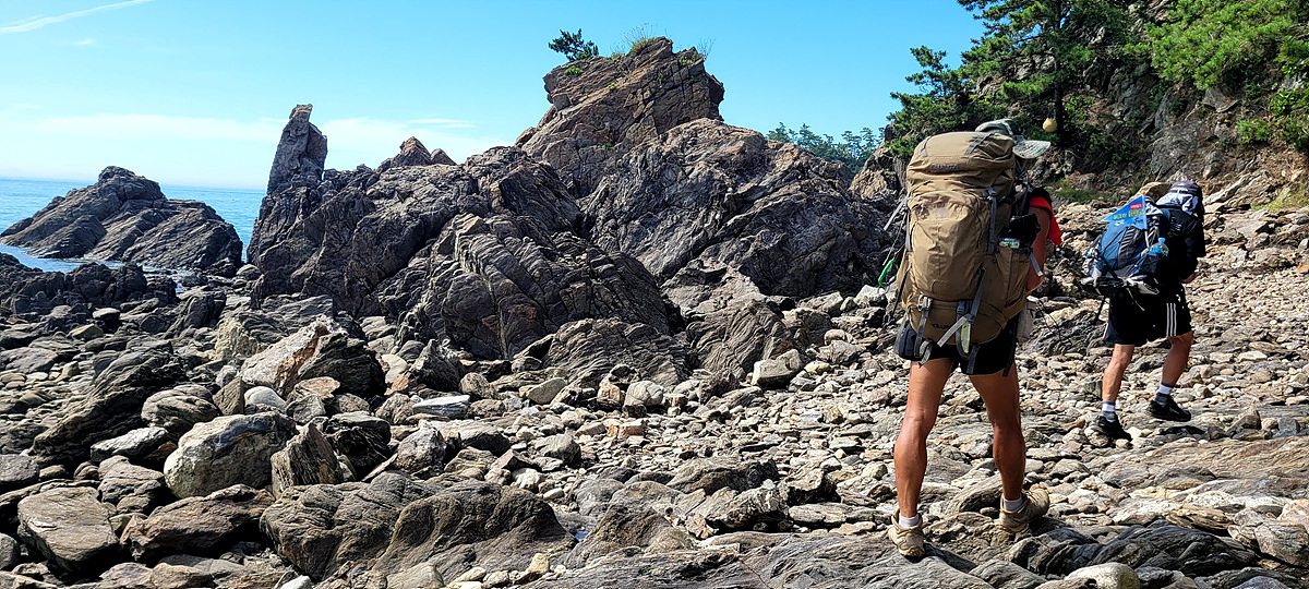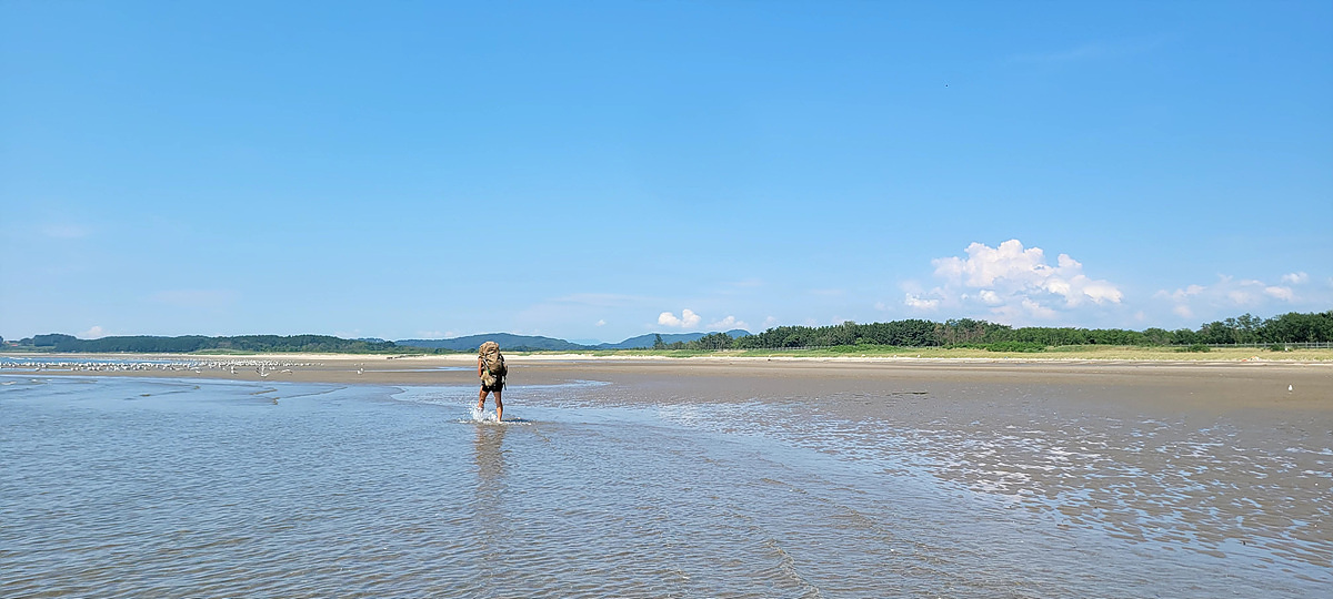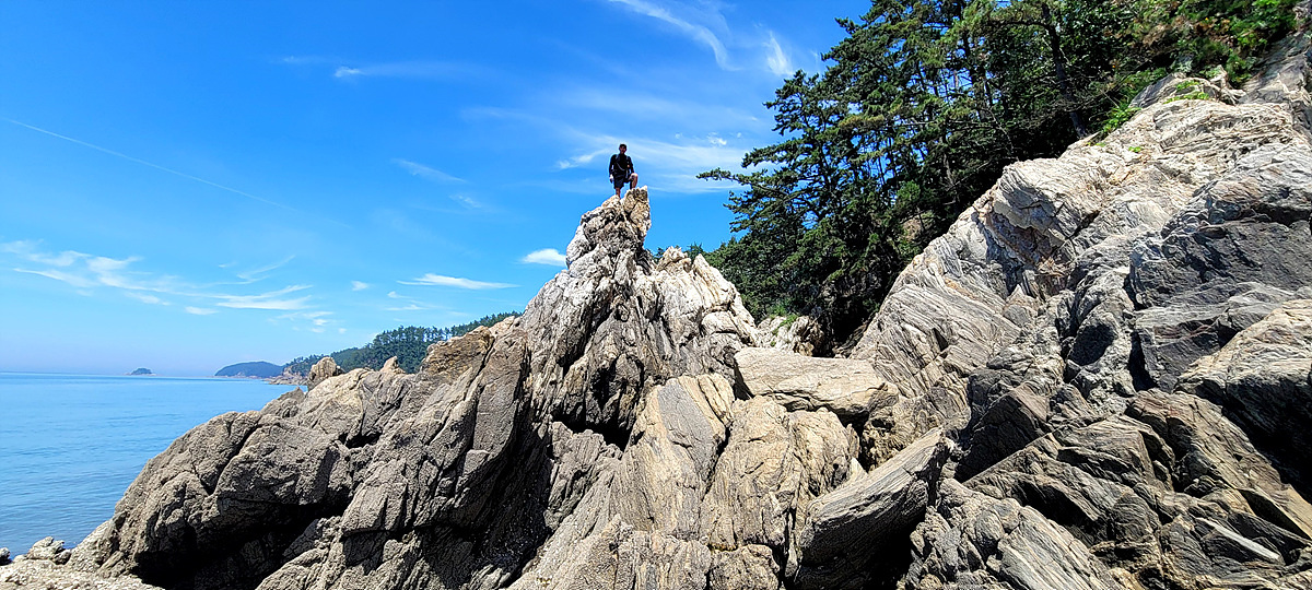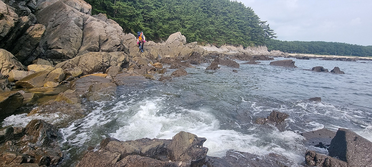 허벅지 허리 높이의 바닷물, 모래, 푹푹~ 갯벌, 자갈, 뾰족뾰족 바위, 암릉, 비탈, 산길 등...