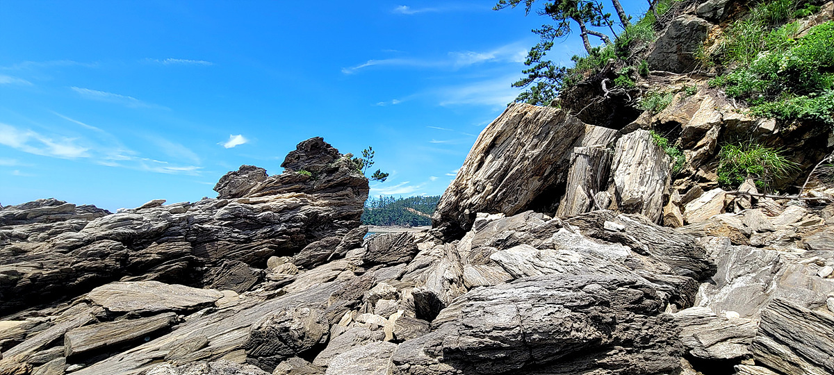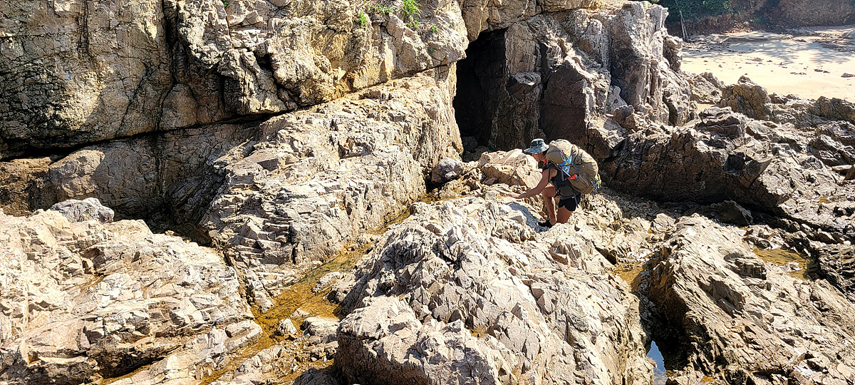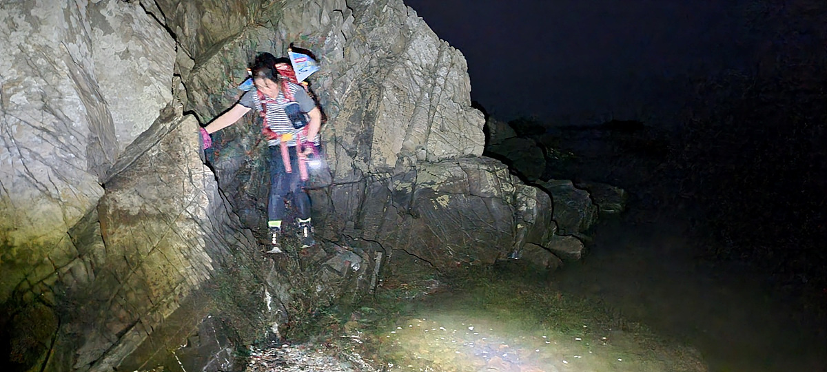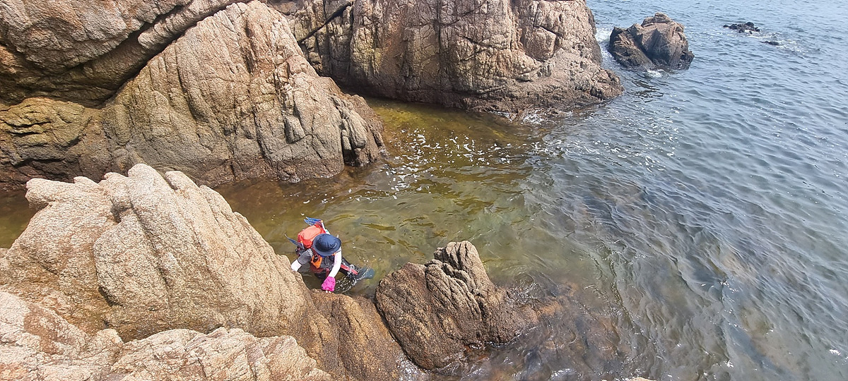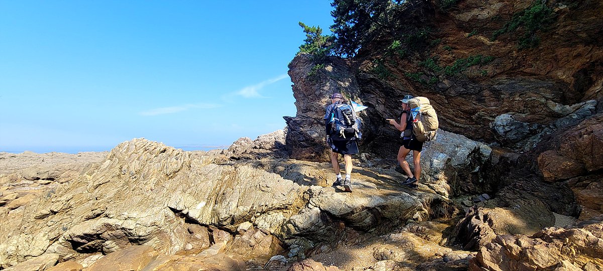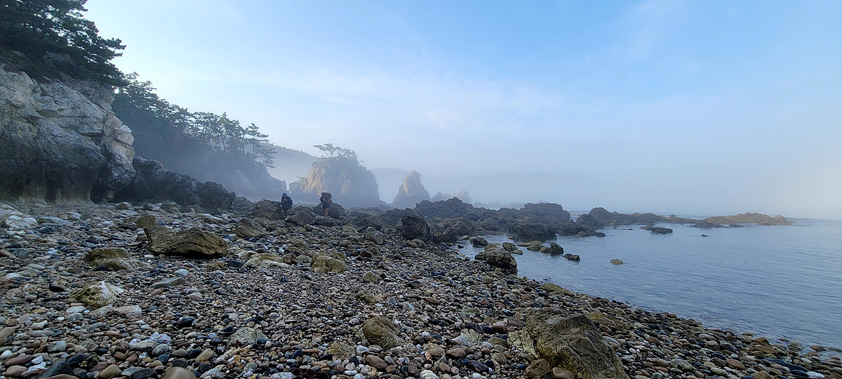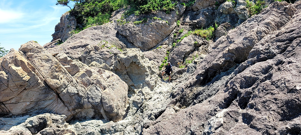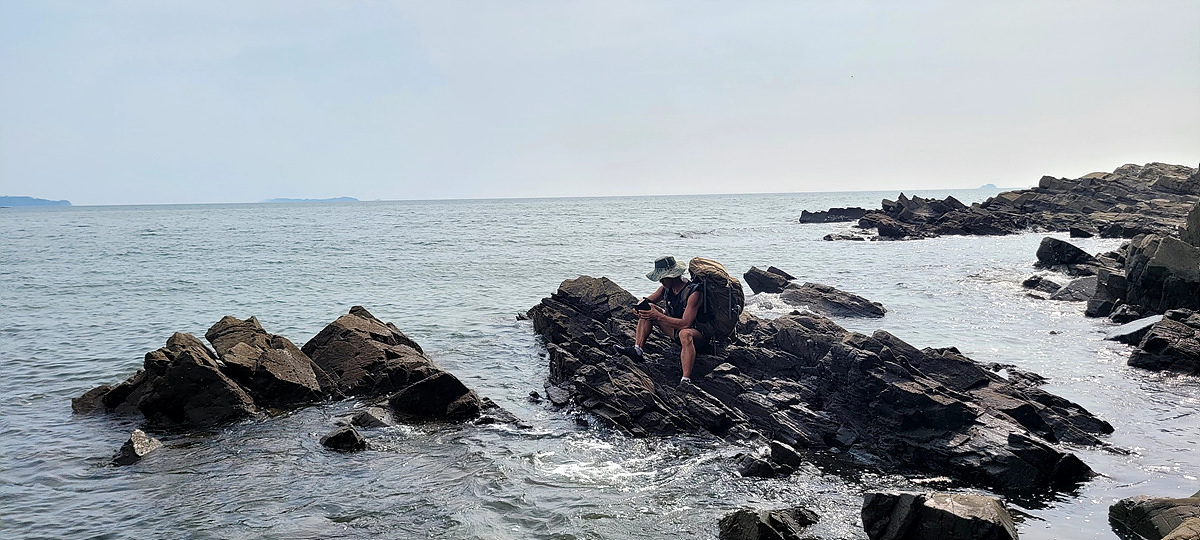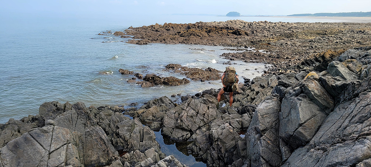 허벅지 허리 높이의 바닷물, 모래, 푹푹~ 갯벌, 자갈, 뾰족뾰족 바위, 암릉, 비탈, 산길 등...