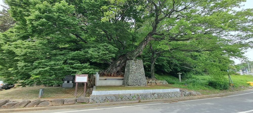 500년 된 팽나무로 임진왜란 당시 이순신 장군께서 당항포 해전을 치른 후 이곳 장자목에 배를 메어놓고