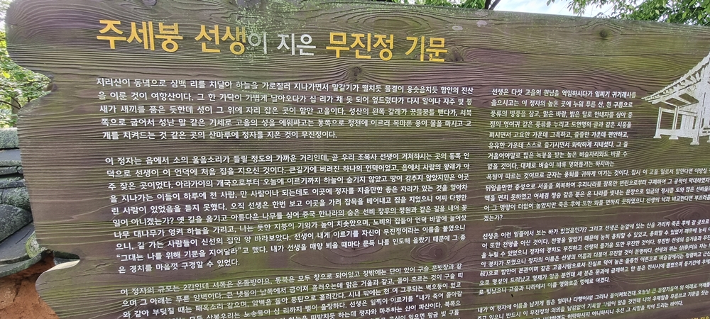 오고 가는 사람들이 정자에 올라올까 싶어 두 눈은 살포시 감고 귀는 반쯤 뜨고