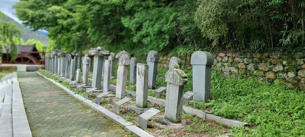 만년교 옆에 자리하는 영산 현감 비석군으로 모두 32기다