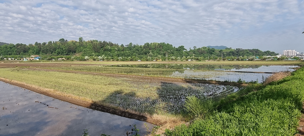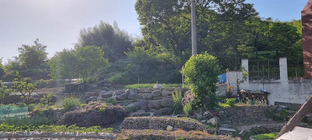 고도를 점차 올리며 걸음하니 계곡형의 골짜기마다 듬성듬성 집들이 보이고 그 곁 무논에는 개구리 소리가 이른 저녁부터 새벽까지 몸서리 처지게 이어진다.