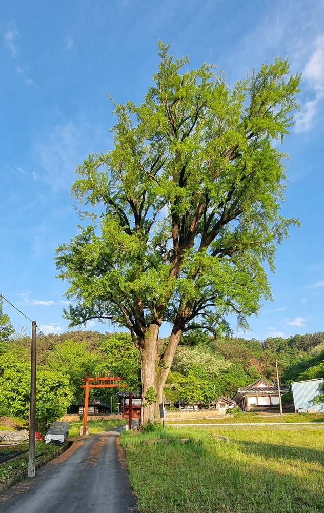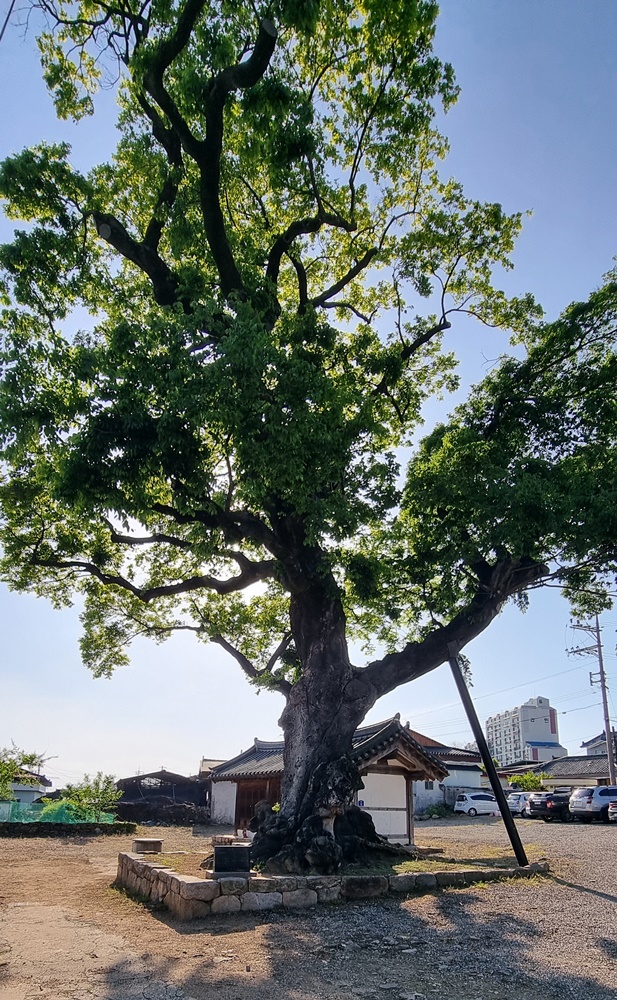 높이 20m의 600년 된 팽나무와 뒤에 건물은 책실(冊室)이다