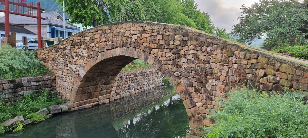 여항산 서쪽 계곡에서 흘러온 지전천을 지나