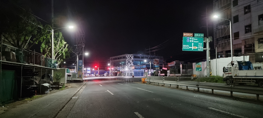 새벽길에 대형 트럭만 진북 일반 산업 공단으로 오고 갈 뿐이고