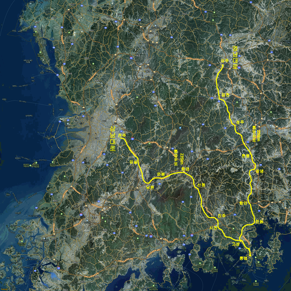 이곳 통영대로 우측길 고성 마산,창녕,현풍,성주,김천을 넣어야 완전체가 되는 영남대로 길이다.