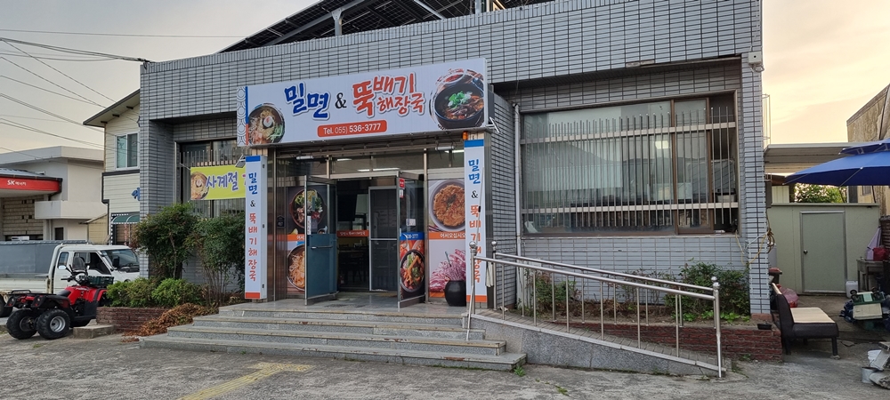 계성면 명리 마을에 들어와 때늦은 점심과 저녁 겸으로 밀면을 시켰는데 그 맛이 일품이다.