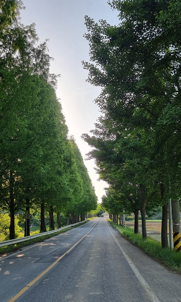 저녁 무렵이라 키다리 메타나무가 서 있는 길