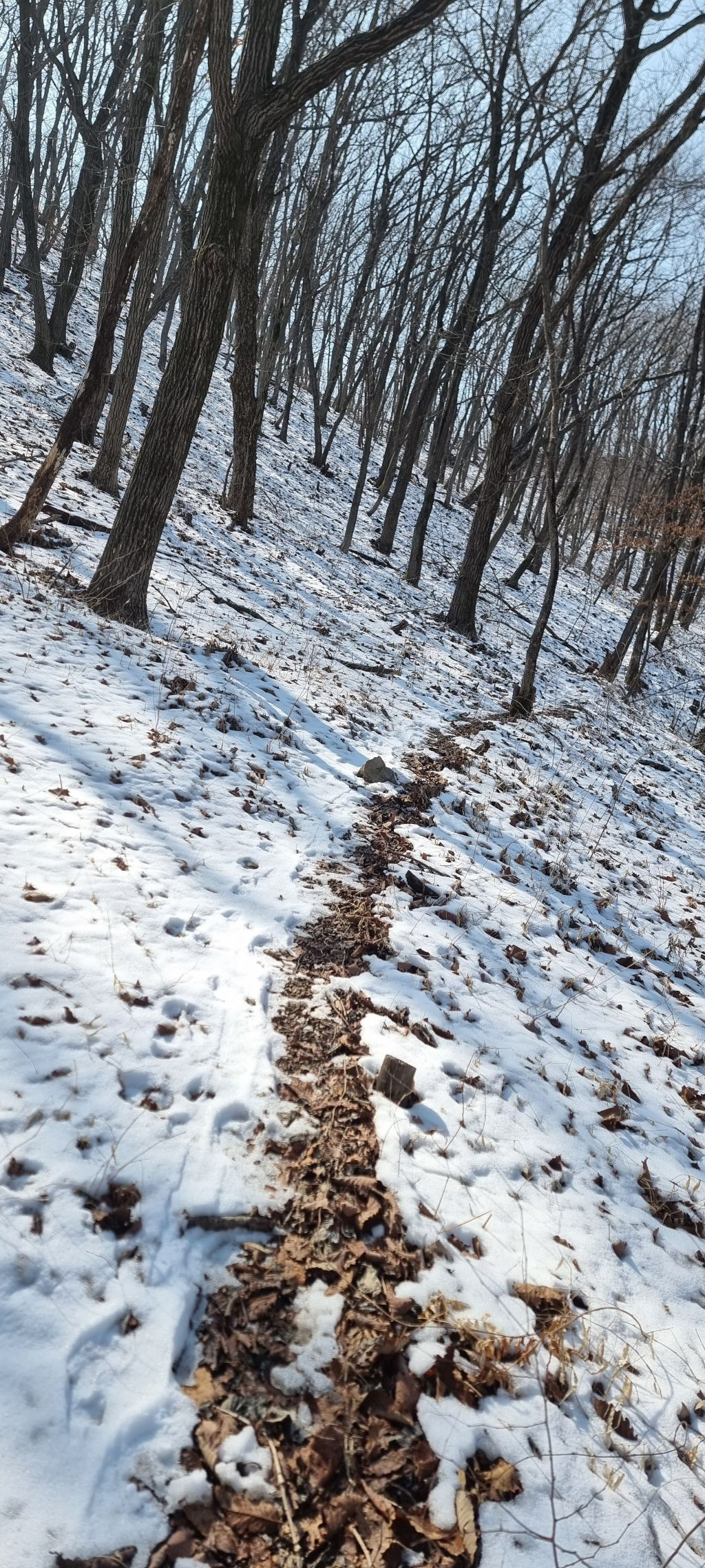 산 경사면으로 눈이 쌓여있는데 앞으로 보름뒤에 도착할 광양땅에는 진달래가 곱게 피어 반길 것 같고