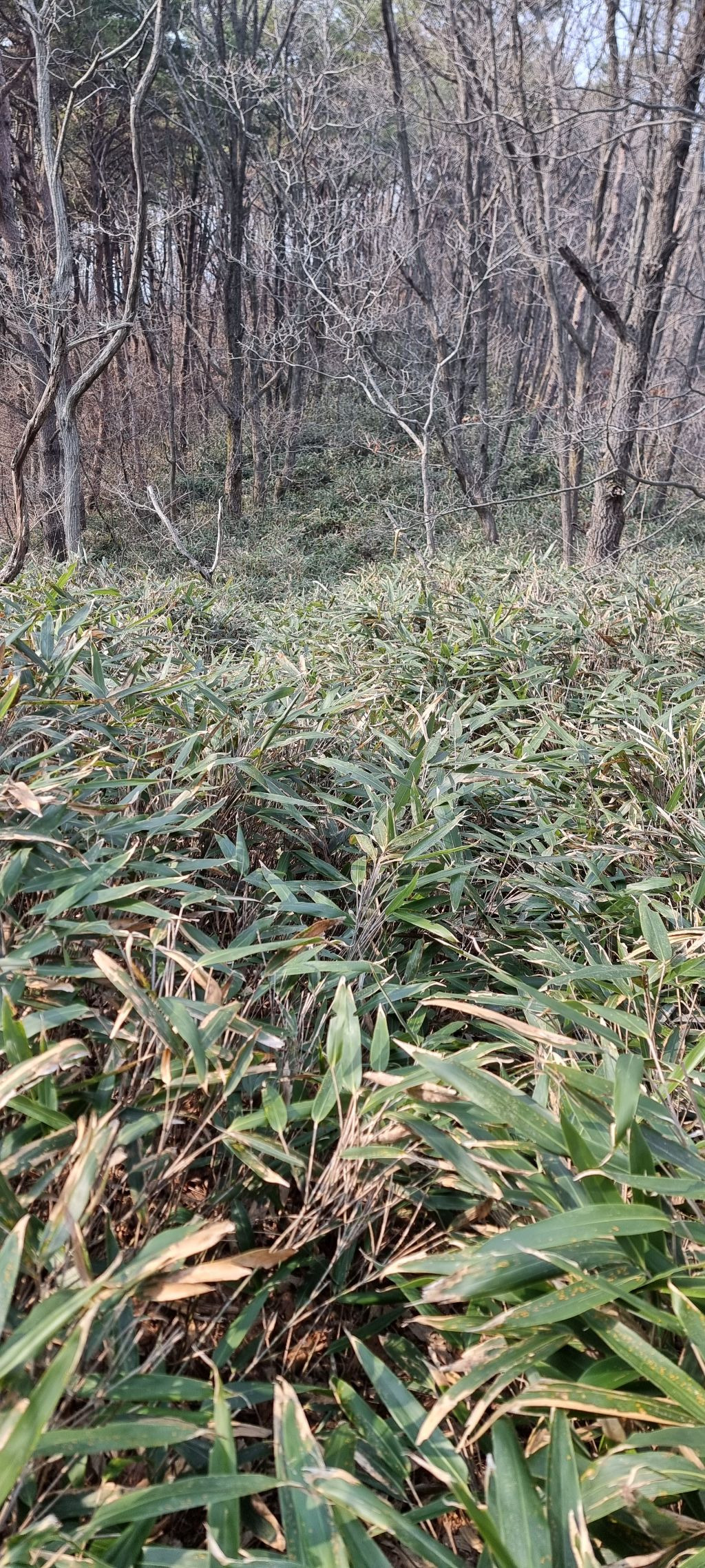 내려가는 산죽길 경사면으로...