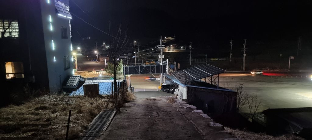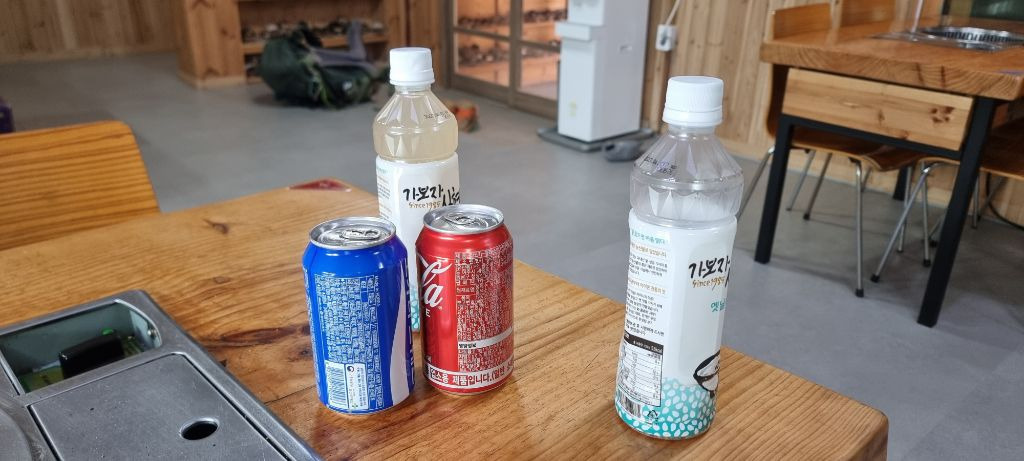 인근 불 켜진 주유소에 들서가서 생수 두병 받아나와
