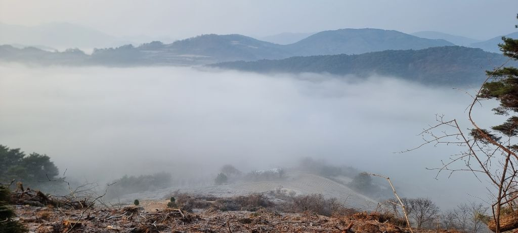 돌고 돌아 추령봉에 도착하니 태양은 고개를 내밀었지만 어디로 간 건지