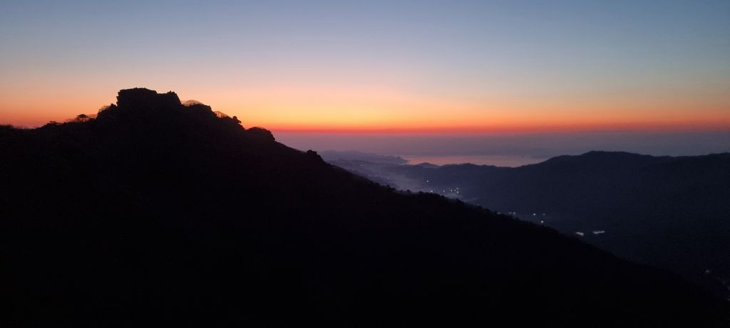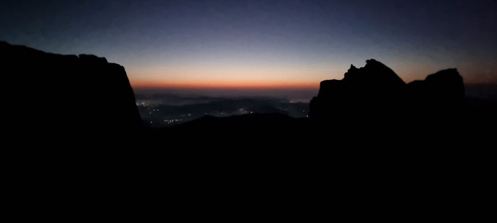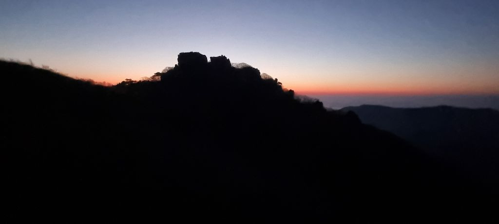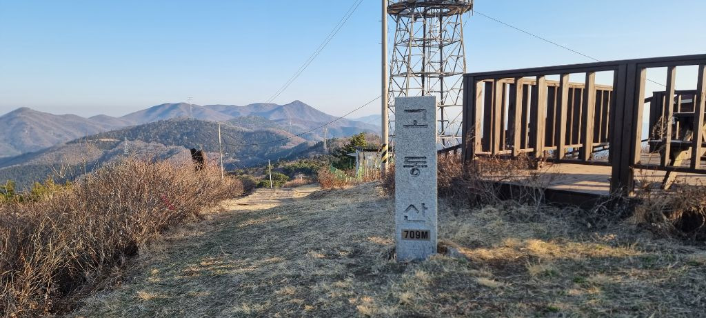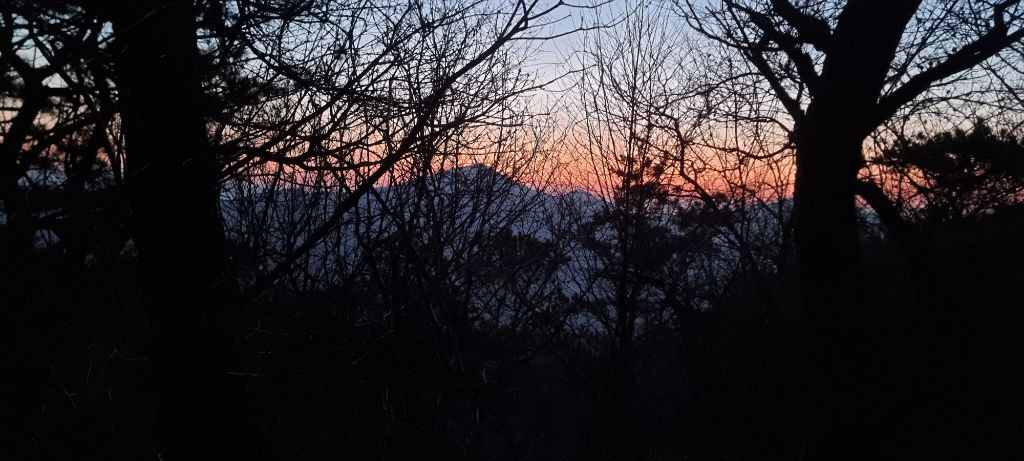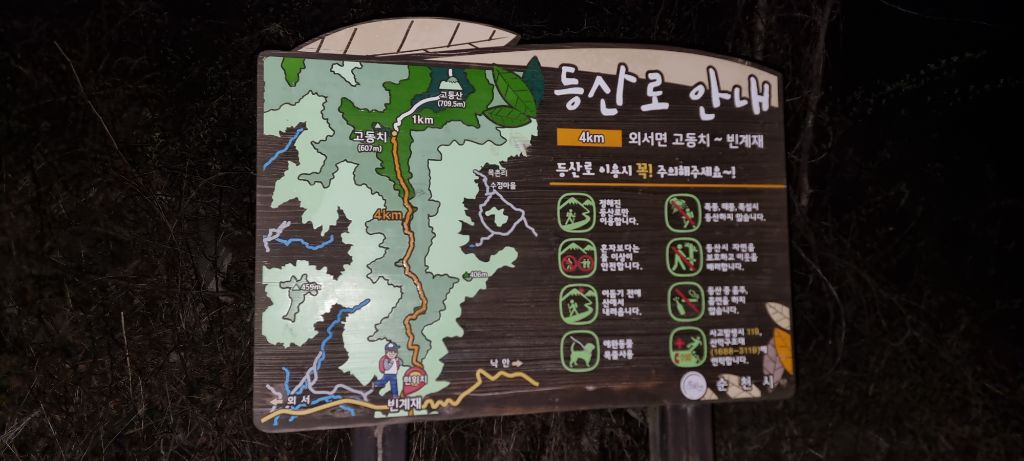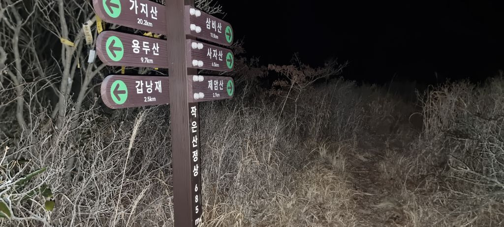 어둠 속 짧은 오름길 올라오면 680미터의 작은산에 도착하고