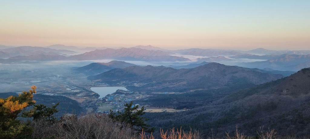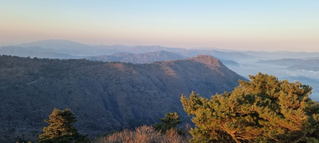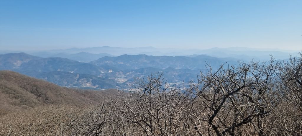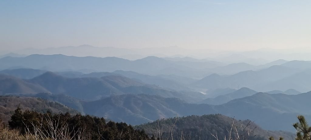 그동안 길을 걸으며 뿌연 미세 먼지와 참나무, 대나무 숲을 지나며 특별히 볼 것이 없었는데 무등과 일람에서 제대로 된 경치에 푹 빠진다.