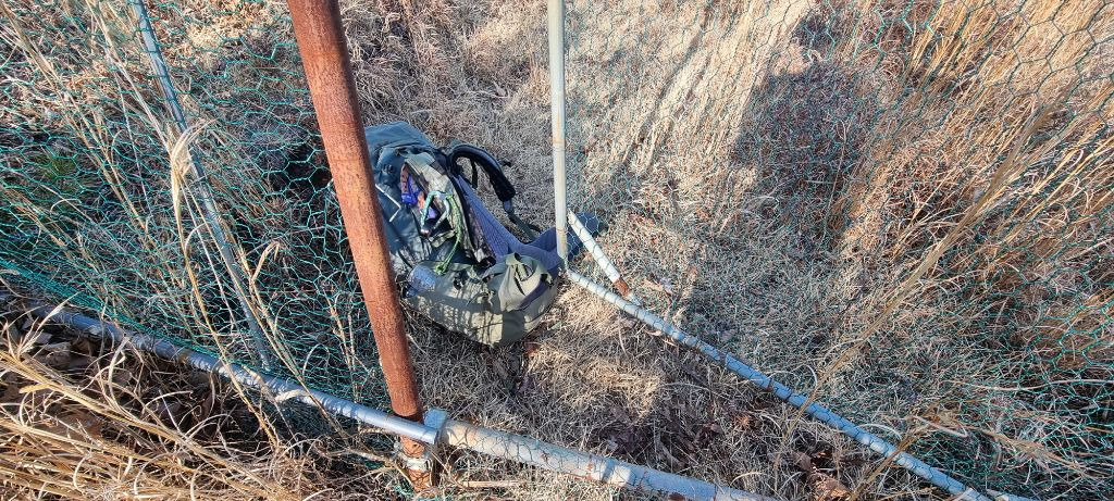 문아래 뜯어진 곳이 보여 배낭은 깨질 게 없어 담장밖으로 던지고