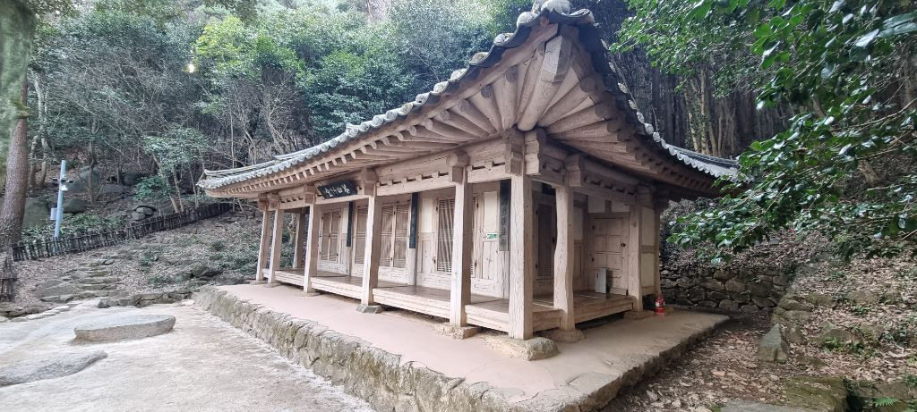 정면 현판에는 "조계산 선암사"지만 뒤쪽은 "고청량산 해천사"로 쓰여있다.(산이름은 청량산 절이름은 해천사)