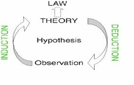 많은 관찰과 실험을 통하여 구체적인 것을 많이 저장한 후 이것들을 포섭할 수 있는 일반적 규칙이나 결론을 도출하는 것 | 일반화된 규칙이나 결론에서 시작해 구체적인 예를 드는 것 (대표적인 예: Grammar Translation Method) |