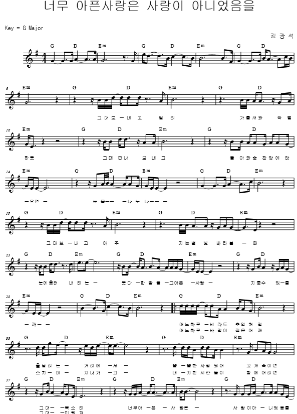 너무 아픈 사랑은 사랑이 아니었음을 작사/류근 작곡/김광석