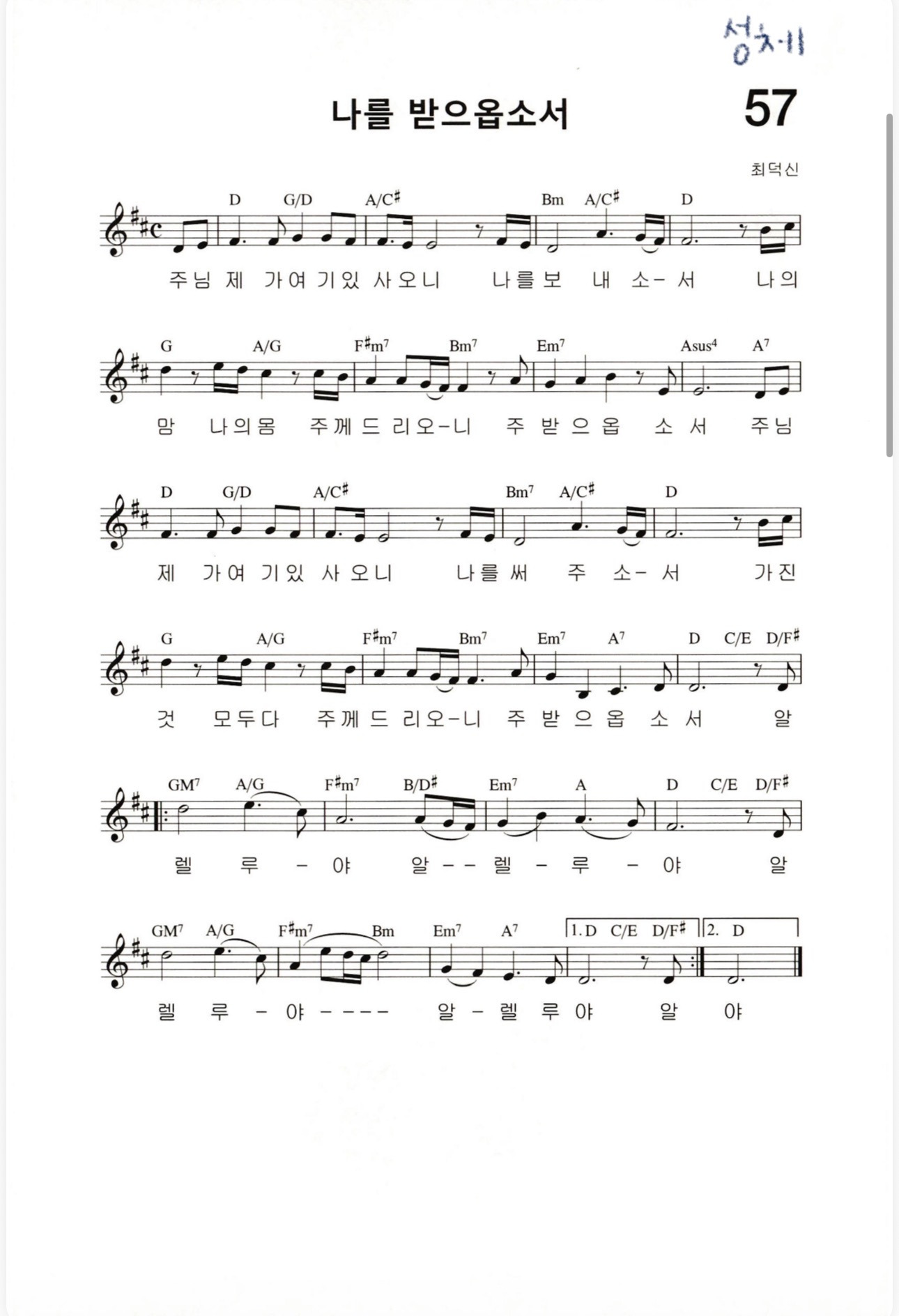 **이미 만들어 주신 악보(C키)가 있습니다만 D키(라장조)로 제작 요청 드립니다.