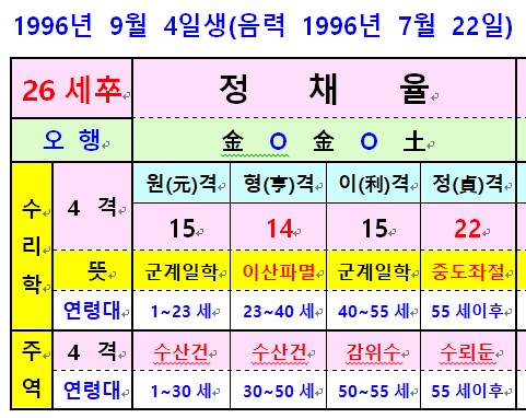 정채율씨의 한글이름 오행을 보면 강자에겐 강하고 약자에겐