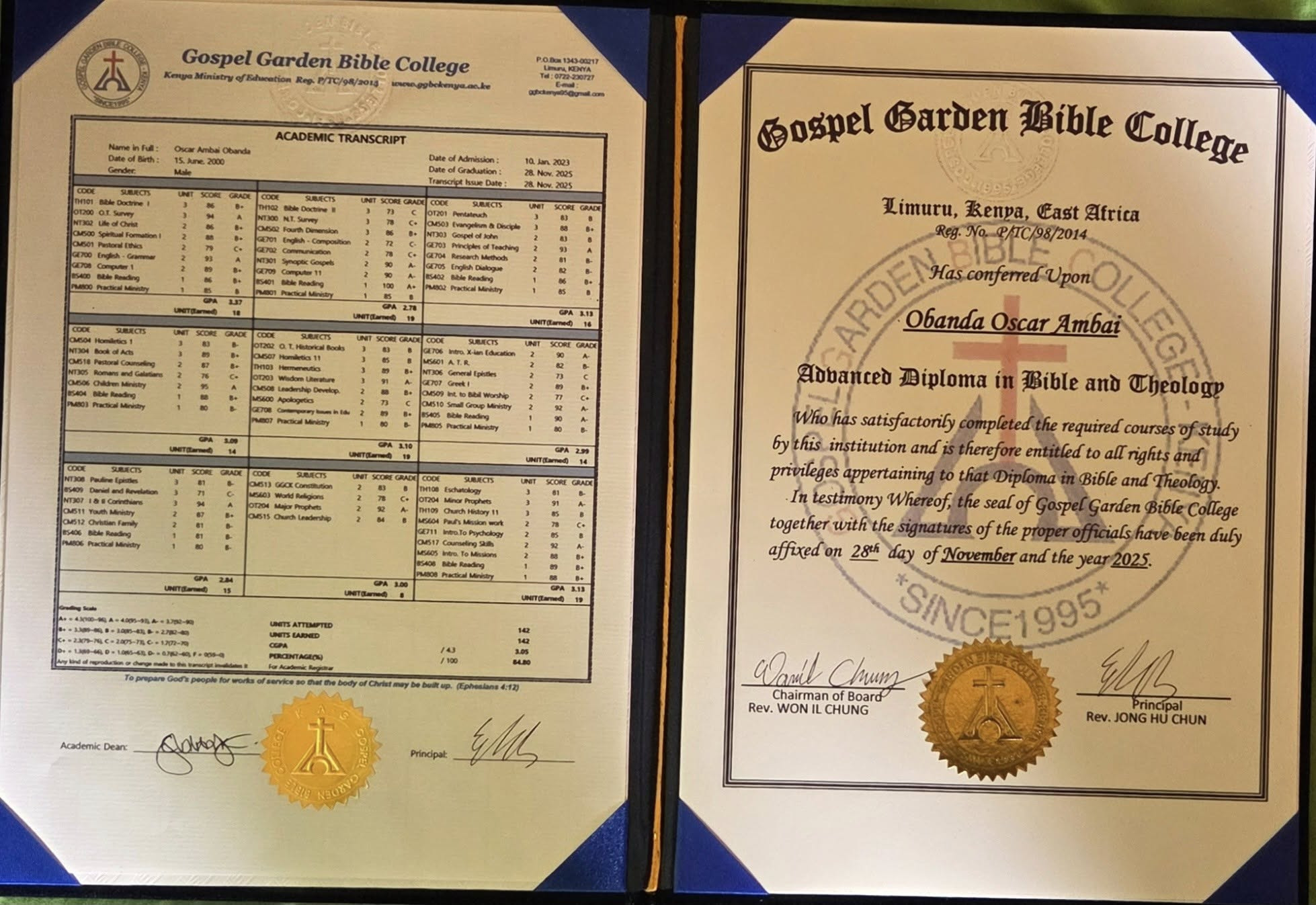 케냐선교 7년 반이 넘는 시간을 저와 함께 한집에서 살아온 오스카가 니무르에 있는 신학대학에서 삼년 간의 공부를 마치고 집으로 돌아왔습니다