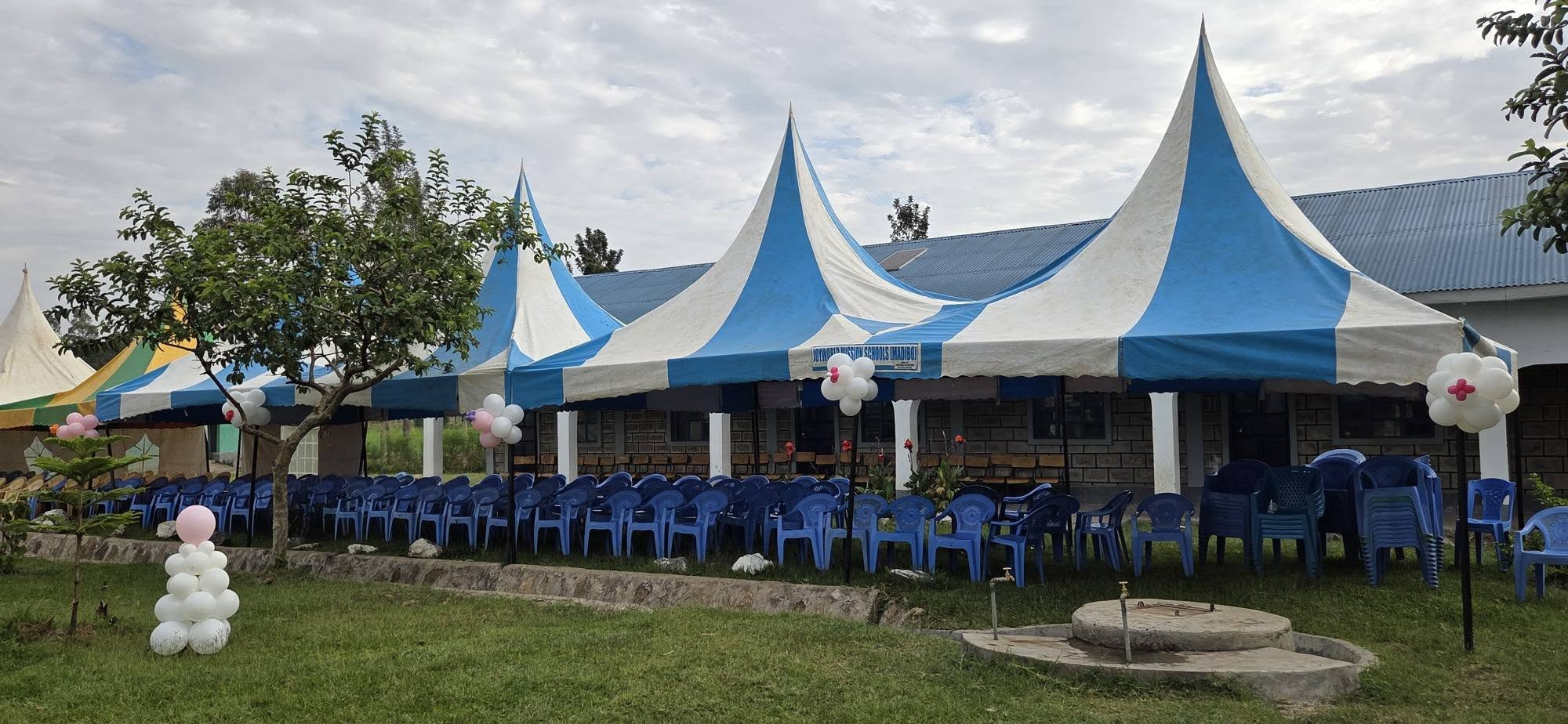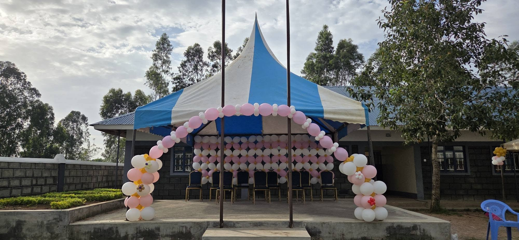 결혼식을 돕기 위해서 한국에서 오신 예빛 국악 선교팀은 예식장을 풍선으로 장식해 주시어 중, 고등학교에서 야외 결혼식을 많은 하객들이 오신 가운데 진행되었습니다