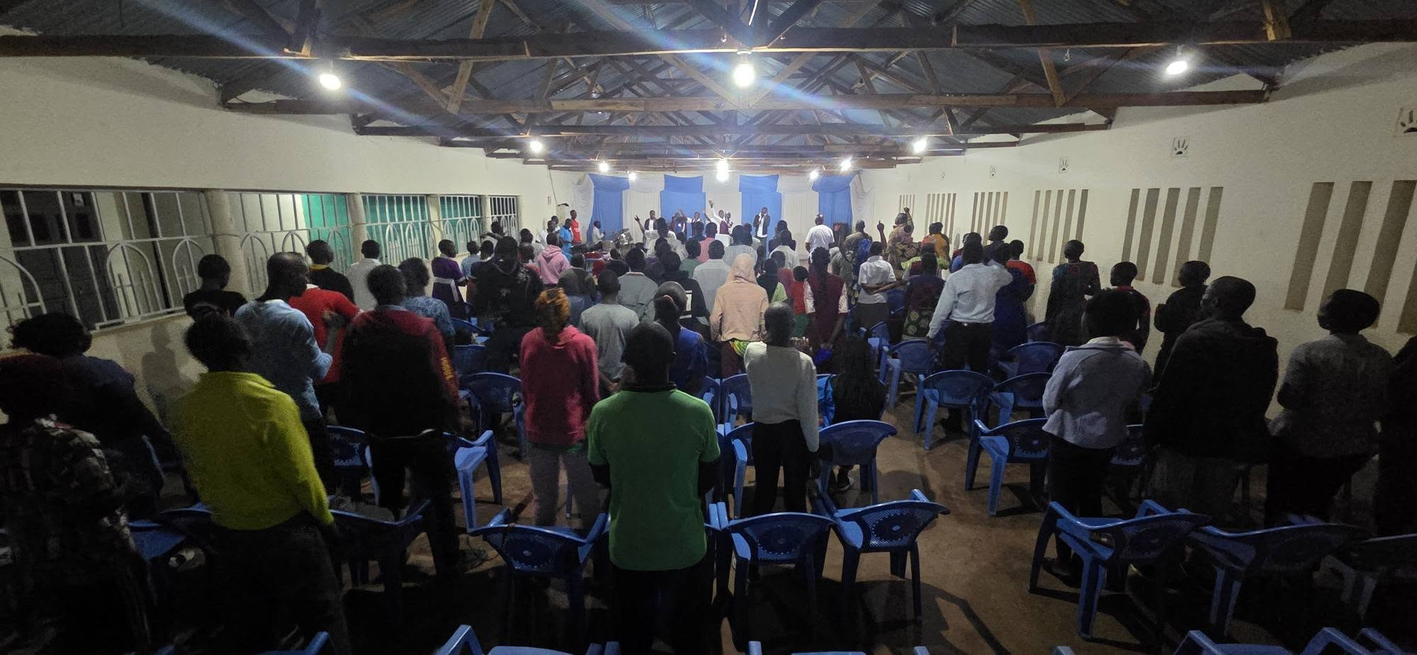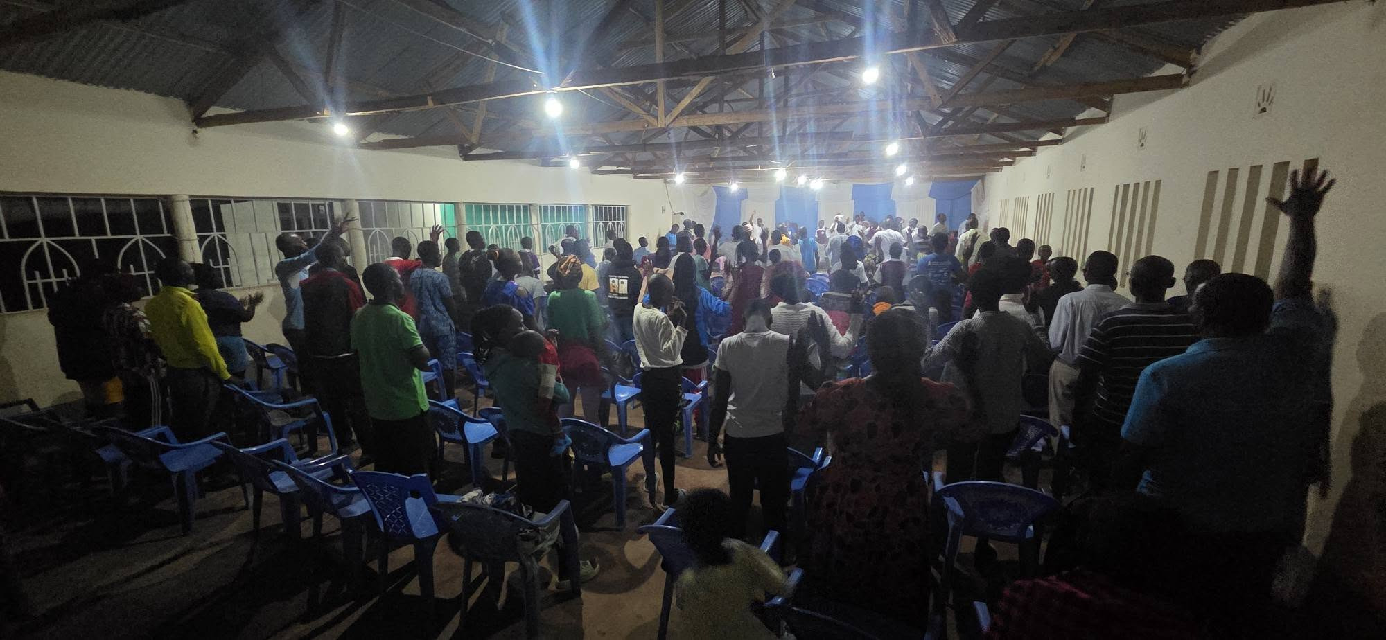 낮 기온이 35도를 넘는 무더위에도 하루 종일 공부하느라 밭에서 일하느라 지친 몸을 이끌고 하나님의 임재하심 앞으로 나온 이들의 찬양이 목요 밤하늘에 울려퍼집니다