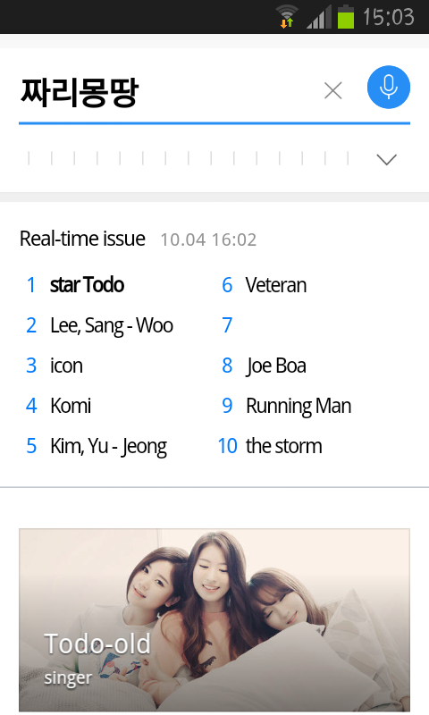 Hot Issue 151004 SBS Inkigayo 작성자hasfiza|작성시간15.10.04|조회수104 목록 댓글 0 글자크기 작게가 글자크기 크게가 Jjarimongttang 1st most search in Naver and Daum Site Search real time during perform LIVE. 다음검색 현재 게시글 추가 기능 열기 북마크 공유하기 신고 센터로 신고 댓글 댓글 0 댓글쓰기 답글쓰기 댓글 리스트
