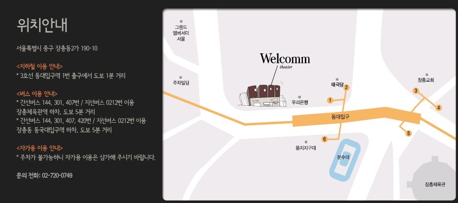8/6~7 우쿨렐레 피크닉 공연장 찾아가는 길 작성자이지민|작성시간10.08.04|조회수38 목록 댓글 1 글자크기 작게가 글자크기 크게가 다음검색 현재 게시글 추가 기능 열기 북마크 공유하기 신고 센터로 신고 댓글 댓글 1 댓글쓰기 답글쓰기 댓글 리스트 작성자젤리빈 | 작성시간 10.08.04 역입구에서 멀지 않은거 같아서 다행이네요! 감사합니다! :D 댓글 전체보기