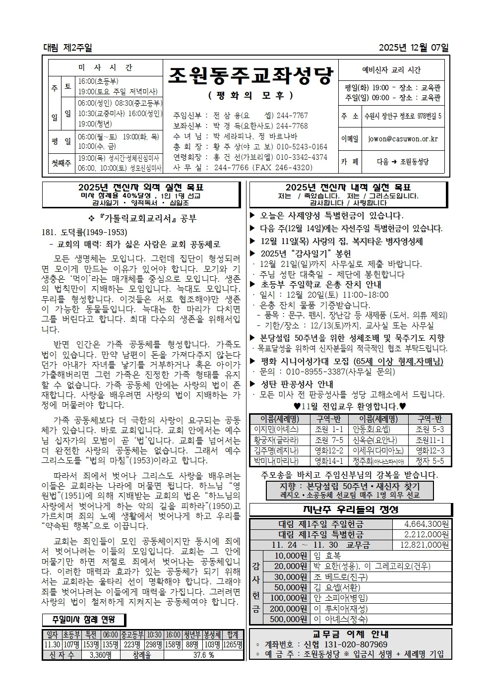 12월 07일 대림 제2주일 주보 작성자조향기 마리아|작성시간25.12.12|조회수60 목록 댓글 0 글자크기 작게가 글자크기 크게가 다음검색 현재 게시글 추가 기능 열기 북마크 공유하기 신고 센터로 신고 댓글 댓글 0 댓글쓰기 답글쓰기 댓글 리스트