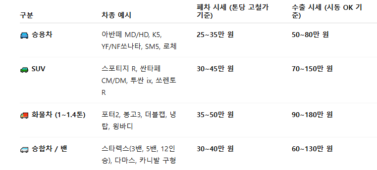 (물론 상태가 양호하다면 수출 시세는 더 올라갑니다.)