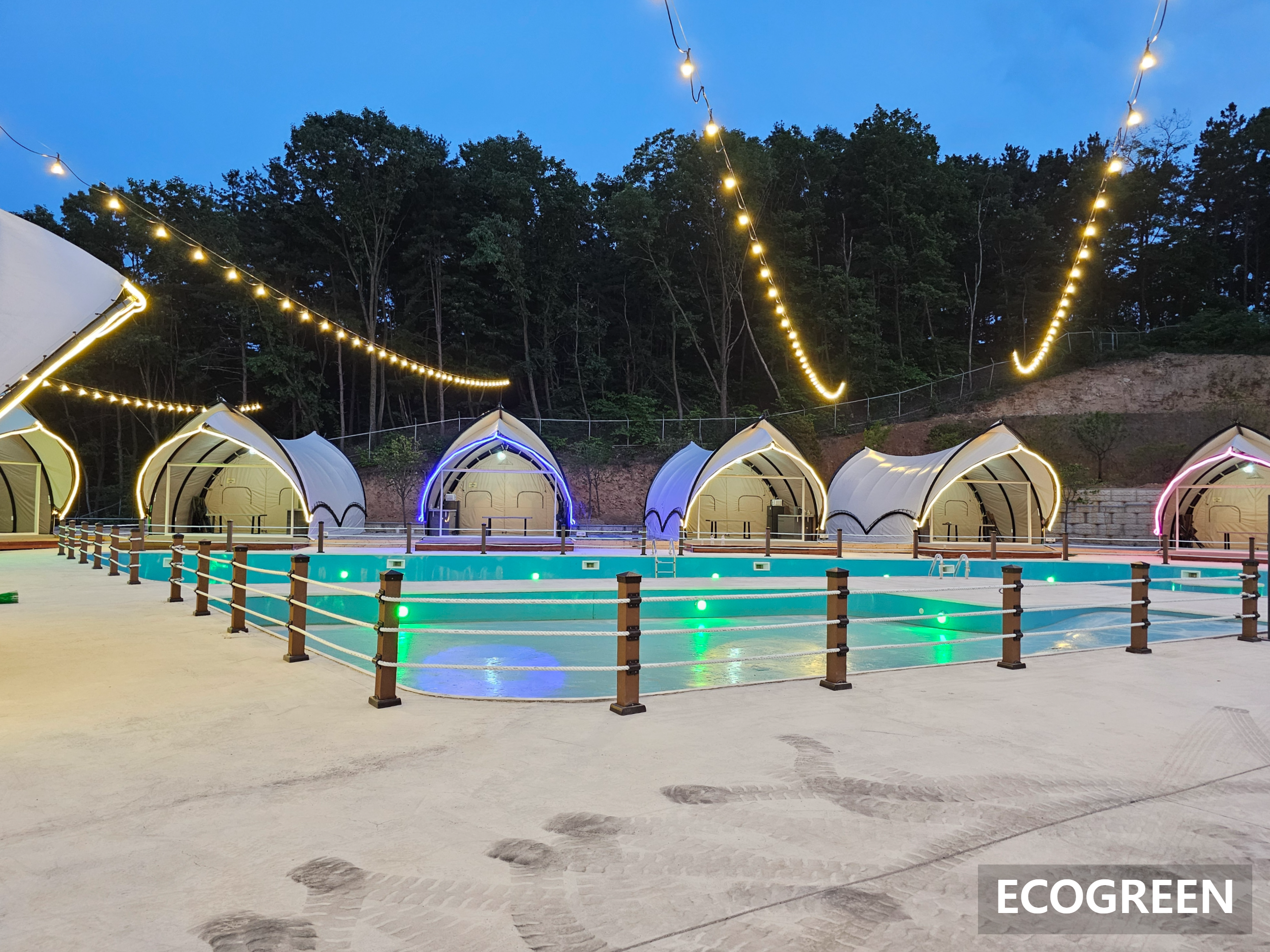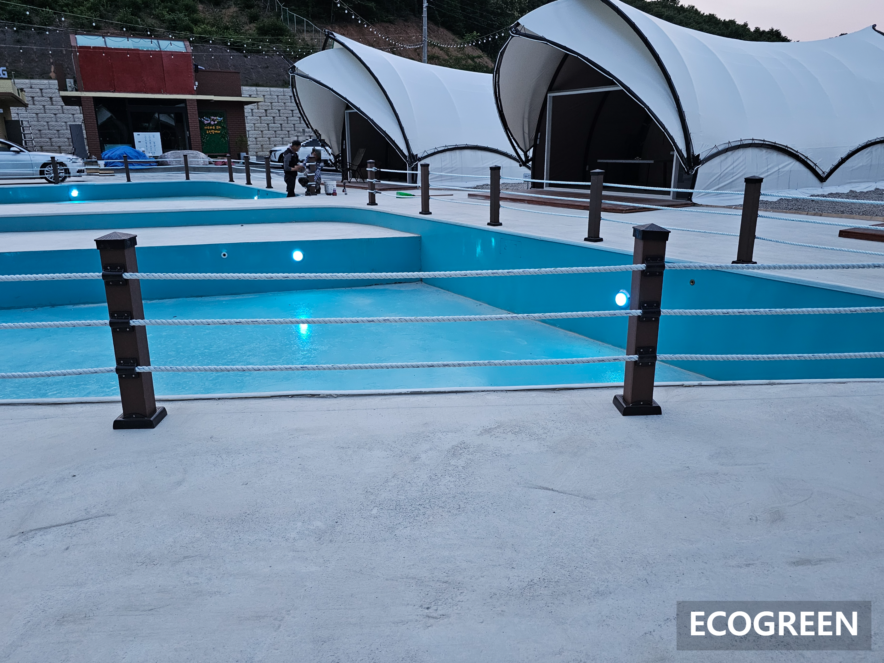 포천 글램핑장 수영장 합성목재 로프휀스 설치했습니다.