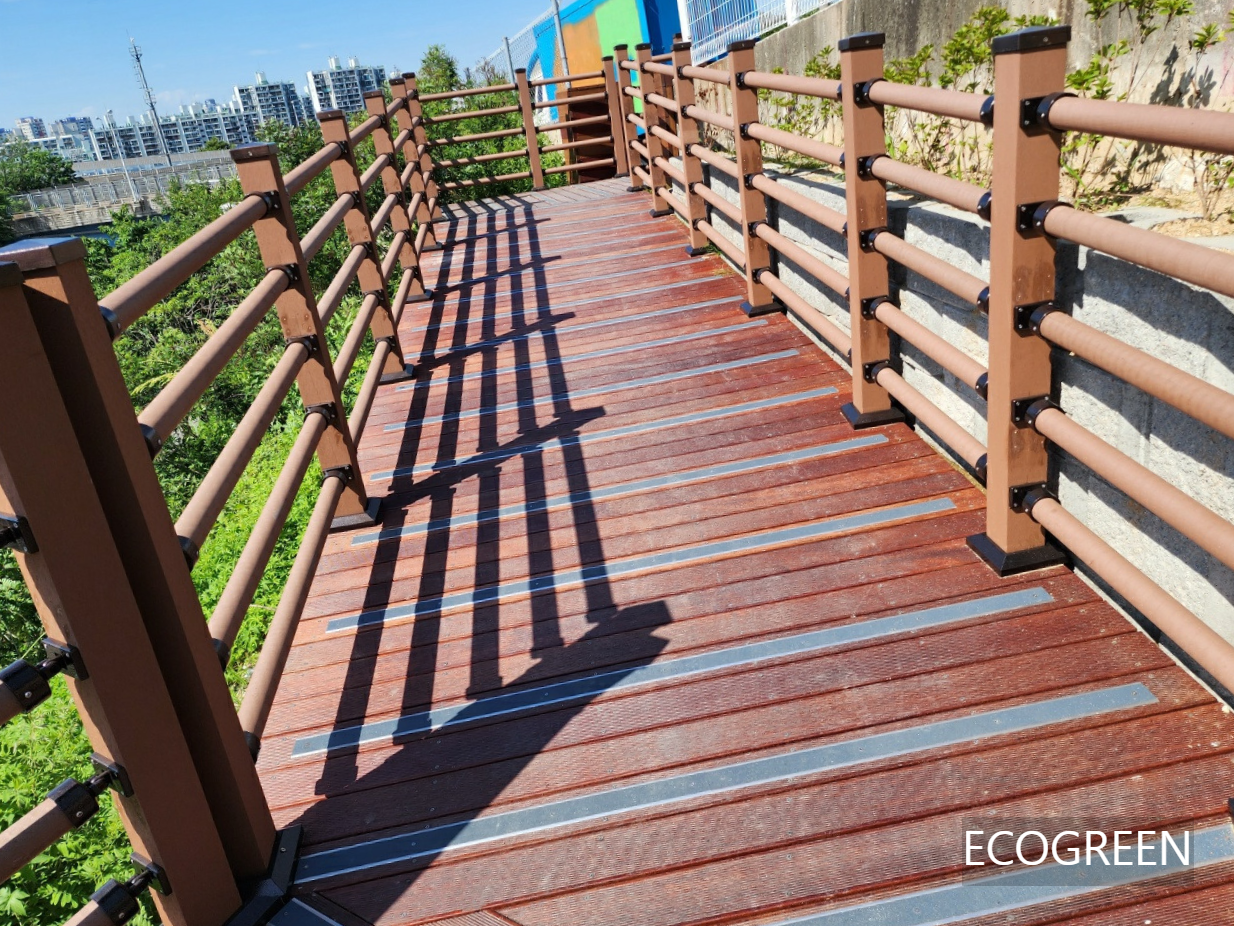 합성목재 부드러운 원형 핸드레일은 남녀노소 누구나 편안하게 잡을 수 있도록 제작되었습니다.