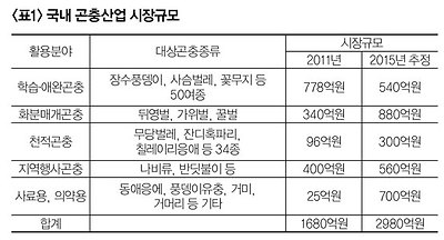 곤충산업의 시장규모는 약 2980억원으로 추산된다. 분야도 학습·애완곤충, 화분매개곤충, 천적곤충, 사료·의약용 곤충 등으로 다양하다. 향후 식용곤충의 다양한 상품개발과 이용, 식용곤충의 영양·기능성을 부각해 기존 식품문화로 자연스럽게 접목될 수 있도록 곤충식품에 대한 긍정적 인식확대는 과제다.