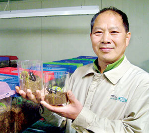 | ▲ 2)황규민 대표는 국내 대기업 화장품회사에 근무하다 우연히 초등학생인 아들의 학습용 장수풍뎅이를 잡아준 것을 계기로 현재는 연간 20만 마리를 전문적으로 사육하면서 고수익을 올리고 있다. | ||