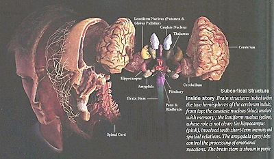 | Basal Ganglia (Striatum): Caudate Nucleus, Putamen, Globus Pallidus | outside the thalamus | involves in movement, emotions, planning and in integrating sensory information |