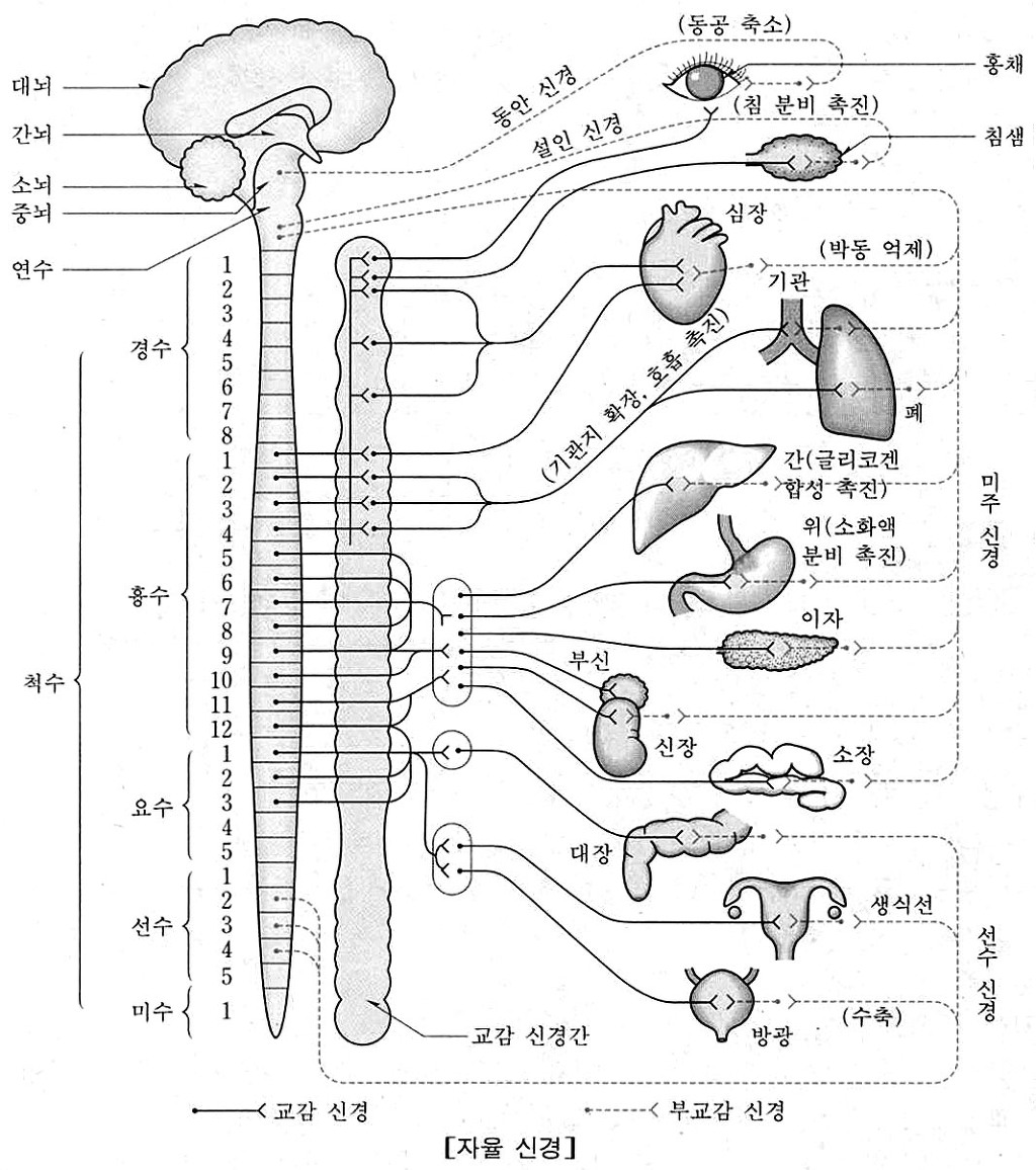 [퍼온 그림: 두뇌 및 척수와 자율신경의 관계]