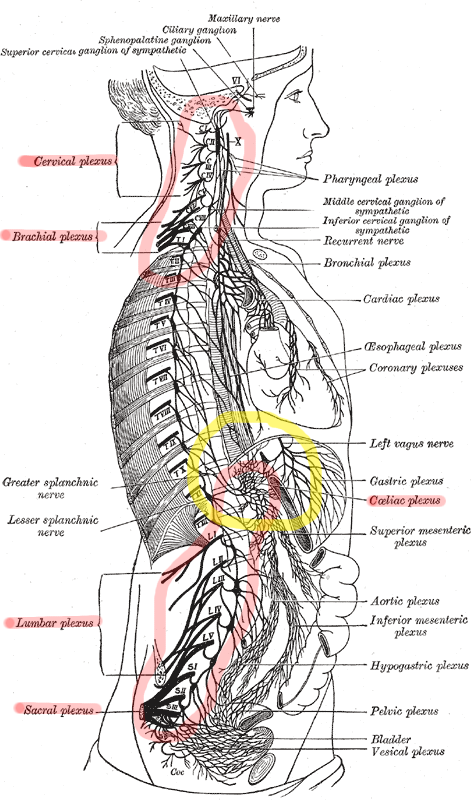 [퍼온 그림: 좁은 뜻의 태양신경총=腹腔신경총, celiac plexus]