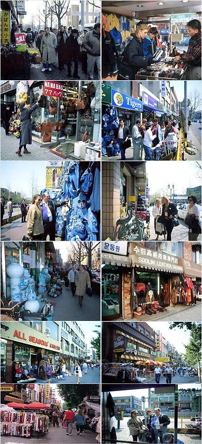 40年前の解放後、近くの米軍の駐屯基地の人々を相手に始めた小さな土産物屋が次第に増えていき、88年ソウルオリンピックを契機に韓国を代表するショッピングタウンとして急成長。1990年代後半から日本、香港、中国、東南アジア、アフリカ、中東地域の観光客たちも訪れるようになり、米軍中心の町から世界的な町へと変貌を遂げ、1997年観光特区に指定されたという背景を持つエリアです。ほとんどの店で英語をはじめ日本語や中国語などの外国語が通じるためショッピングはもちろん、トルコ、インド、パキスタン、スイス、タイなど、よそでは見かけない世界各国のグルメも楽しめます。