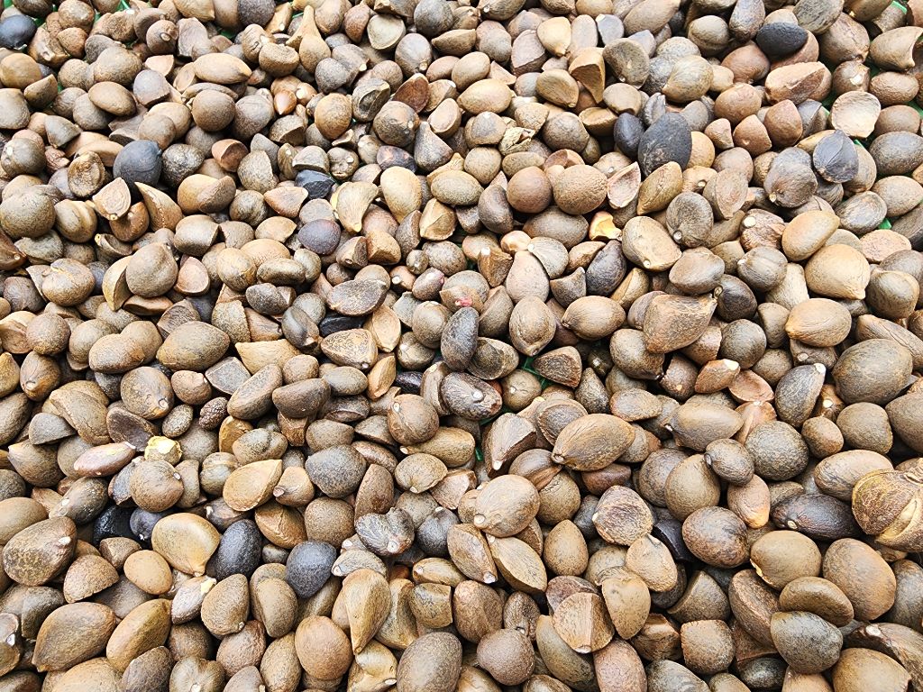 나무에서 열매가 익어 자연적으로 벌어져 떨어진 씨앗은 노르스름하고 기름이 짜르르 반질거려요.