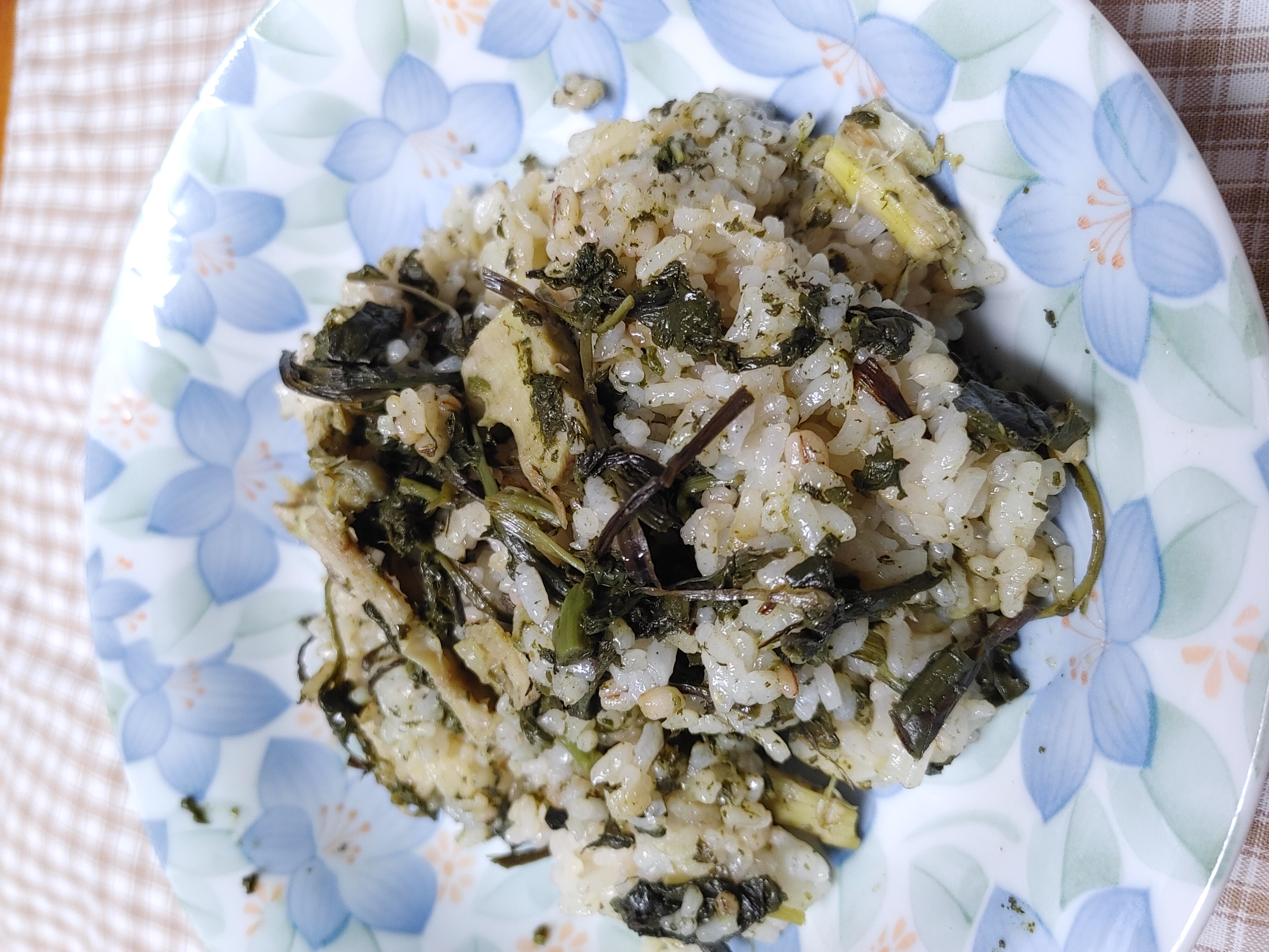 죽순두줄기 함께 해동하여 어간장과 참기름으로 밑간하여 밥을 합니다 나물하기에는 억쎈 취이지만 나물밥을 하면 향도 진하고 아주 부드럽습니다 밥이 되기 전부터 퍼지는 나물향으로 입맛도 돌아옵니다
