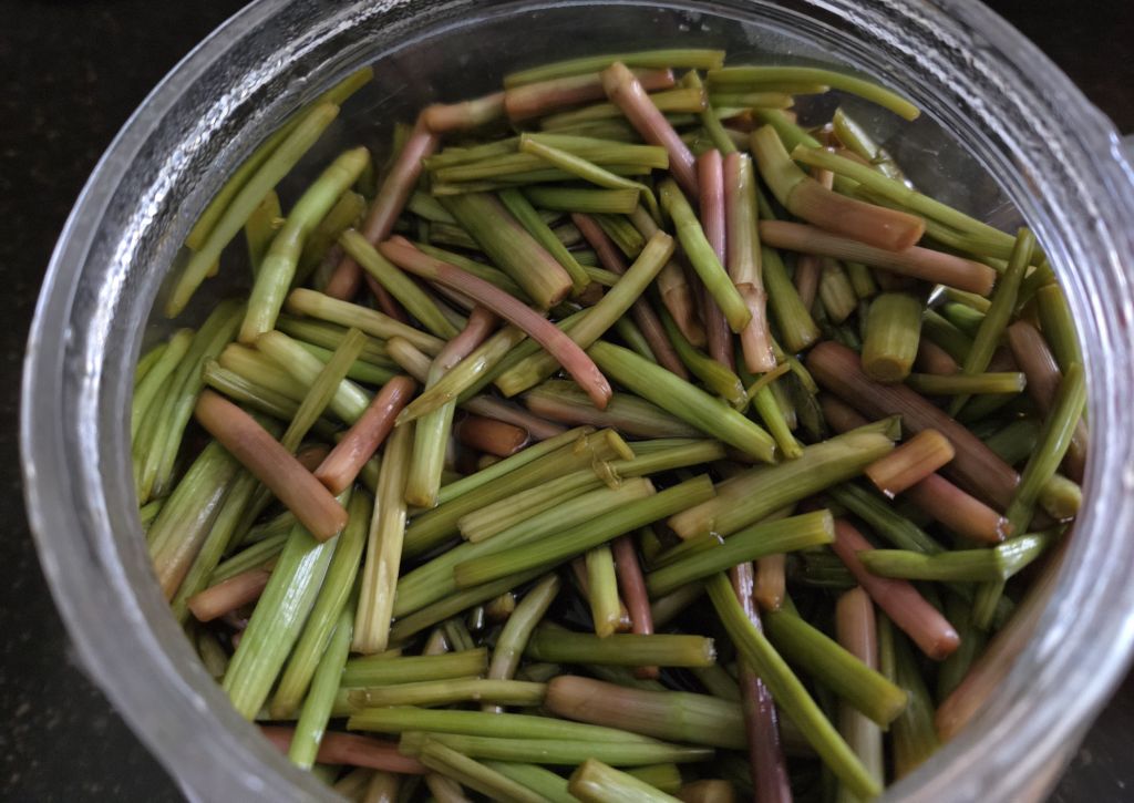 꼭지 부분만 조금 자르고, 줄기만 장아찌로 쓰는데 잎은 살짝 데쳐서 나물로 무치거나 전을 구워도 맛있어요.