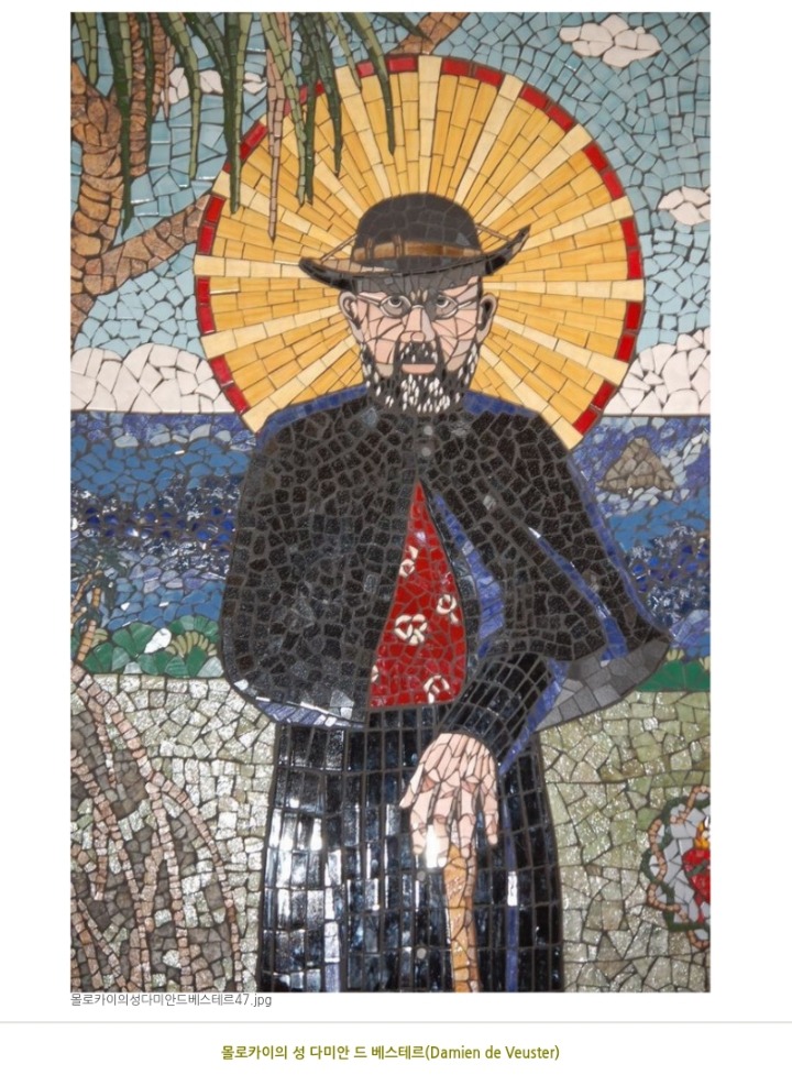 1873년 메그레 주교로부터 몰로카이 섬에 수용된 나환자들의 참상을 전해들은 성 다미안 신부는 33세의 나이로 그곳에 건너가 700여 명이 넘는 나환자들의 집을 지어주고, 의사의 도움 없이 나환자들의 고름을 짜 주고 환부를 씻어 주며 붕대를 갈아주고, 희망을 잃어버린 사람들에게 그리스도의 빛을 밝혀 주었다.