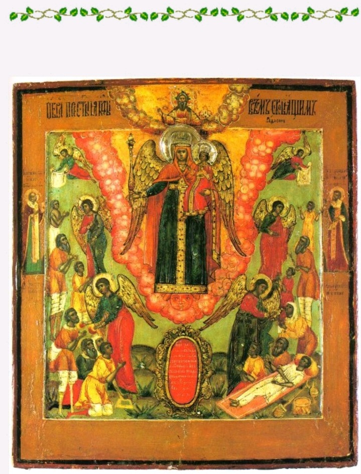 - 그림의 왼쪽 가장자리에는 성자 니콜라이 (Nikolaus)가 있고 오른 쪽에는 성자 티촌(Tichon)이 그려져 있다.