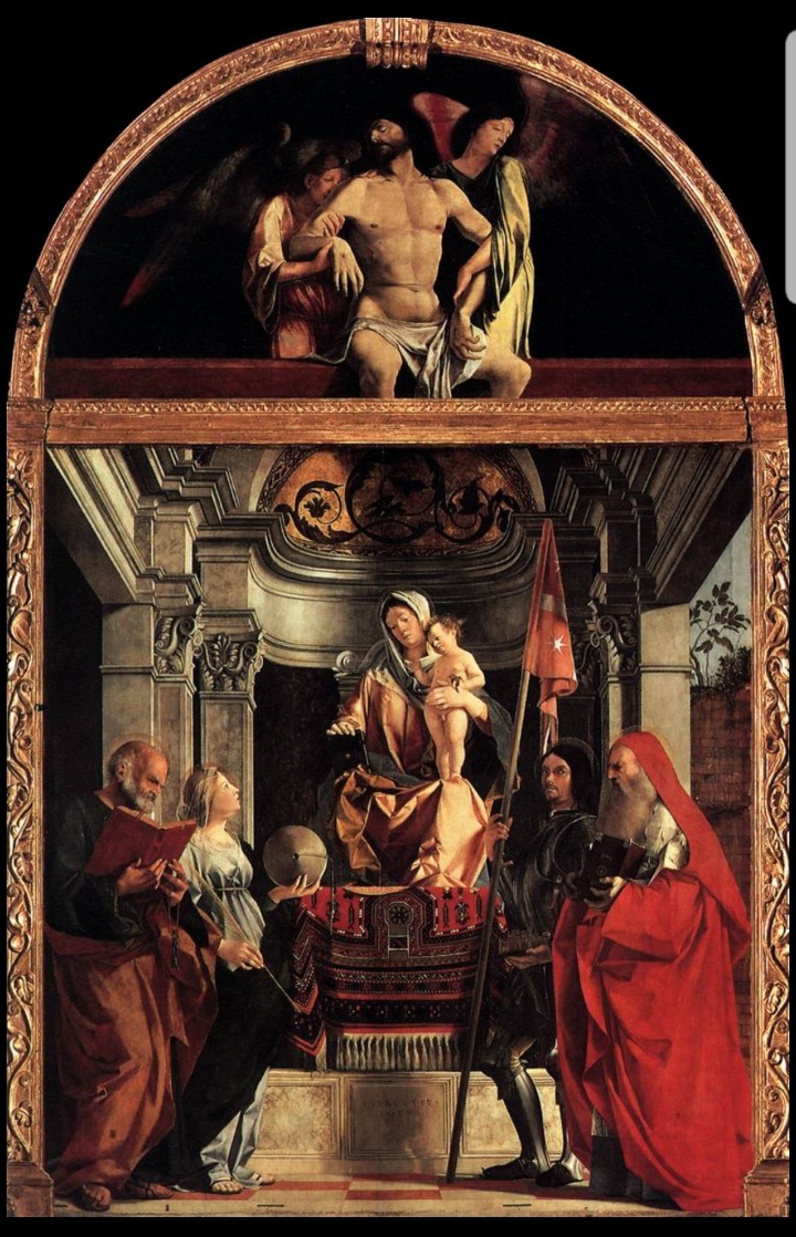 1505, Oil in wood, 177x162cm(lunette: 90x179cm), Sabta Crisrina al Tiverone, Treviso.